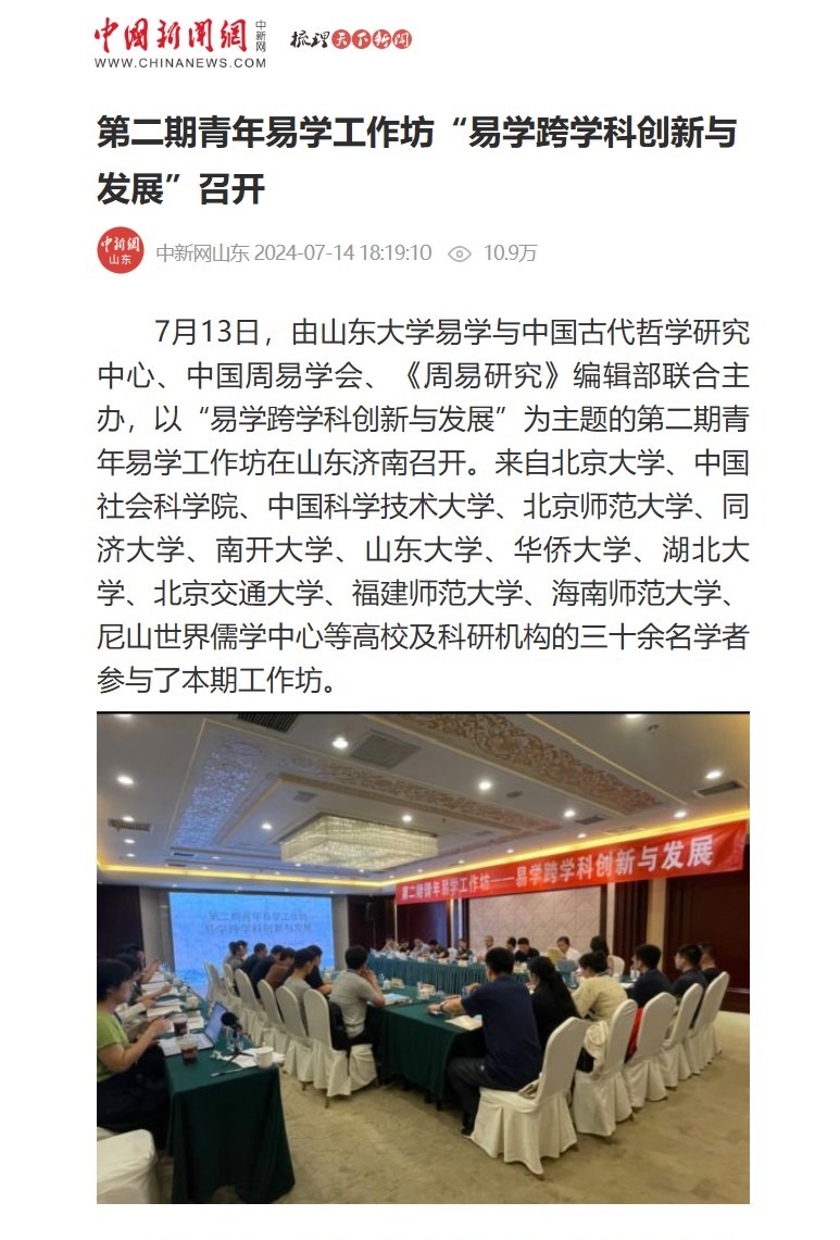 7月13日,由公司易学与中国古代哲学研究中心、中国周易学会、《周易研究》编辑部联合主办,以“易学跨学科创新与发展”为主题的第二期青年易学工作坊在山东济南召开。来自北京大学、中国社会科公司、中国科学技术大学、北京师范大学、同济大学、南开大学、申博sunbet、华侨大学、湖北大学、北京交通大学、福建师范大学、海南师范大学、尼山世界儒学中心等高校及科研机构的三十余名学者参与了本期工作坊。中国新闻网对会议进行了详细报道。