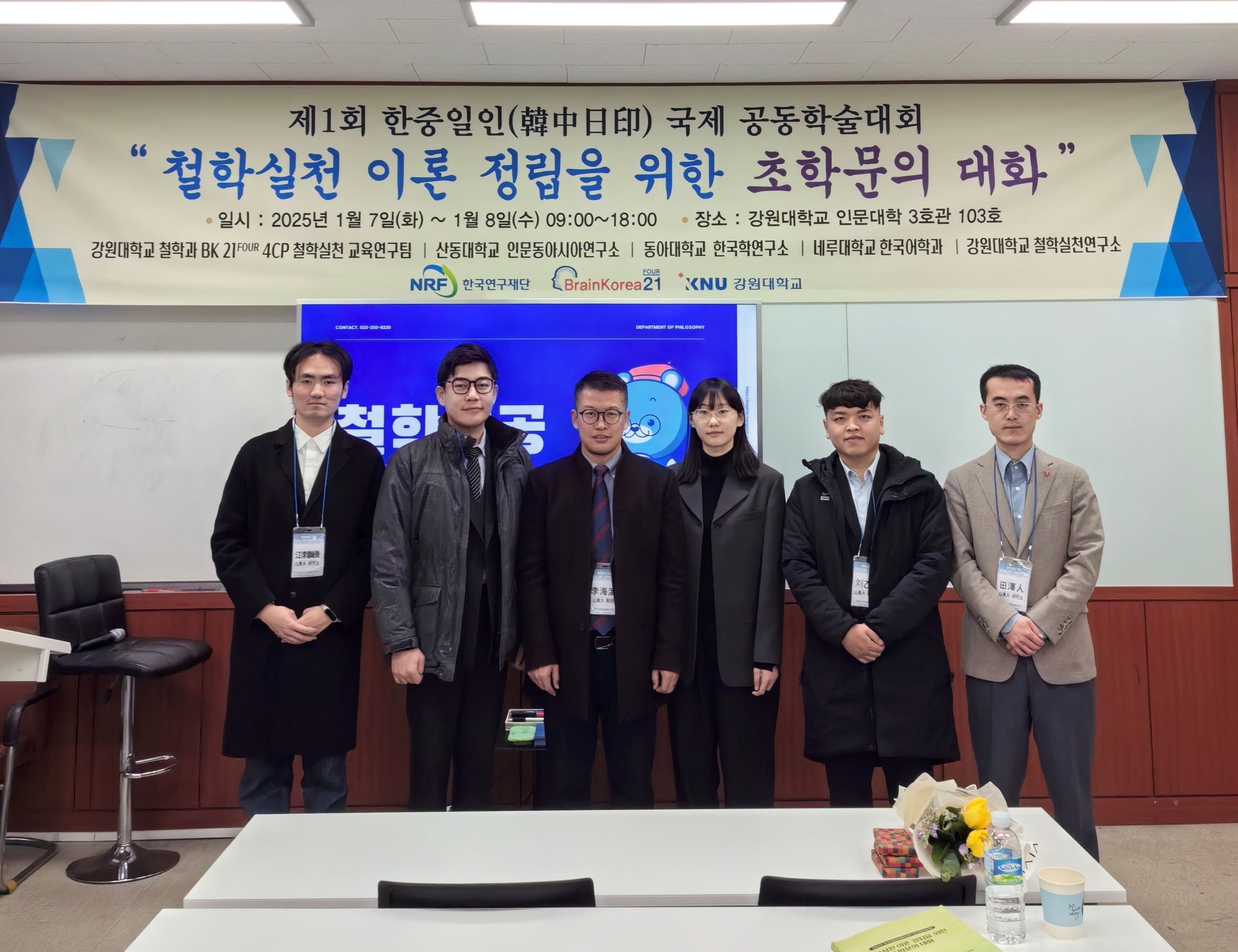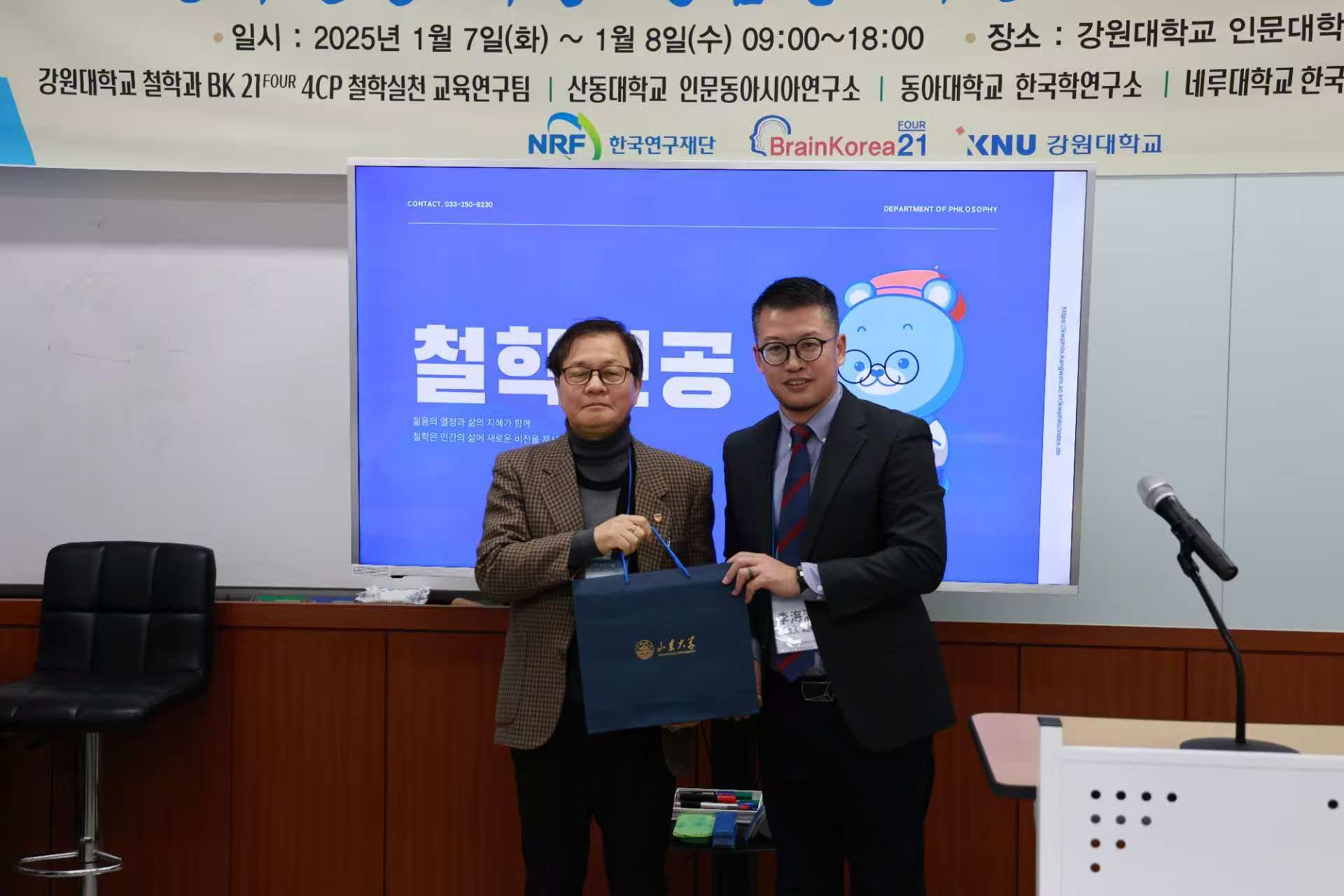 2025年1月6日至9日,申博sunbet李海涛副教授受邀率人文东亚研究团队访问韩国国立江原大学,参加第一届国际哲学实践会议(The International Conference on Philosophical Practice)。本次会议主题为“Transdisciplinary Dialogue for Establishing Philosophical Practice(建立哲学实践的跨学科对话)”。会议旨在将东亚儒·释·道、中西哲学比较研究的讨论,推进至哲学的实践与应用层面。申博sunbet博士后宋陆,博士研究生田泽人、刘乙澜,硕士研究生江李鹏侨、刘致宁一同参会并发表学术论文。