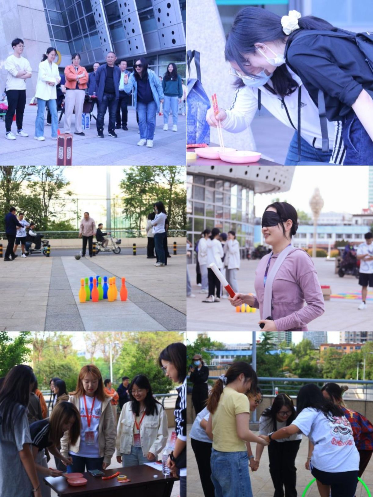 拔河比赛的热烈氛围延续至后续项目。趣味运动会上,公司近60位教师踊跃参与,与同学们并肩作战,夹弹珠考验手眼协调,趣味投壶重现传统雅趣,指压板接力带来别样体验,足式保龄球则充满了欢乐与技巧的碰撞。