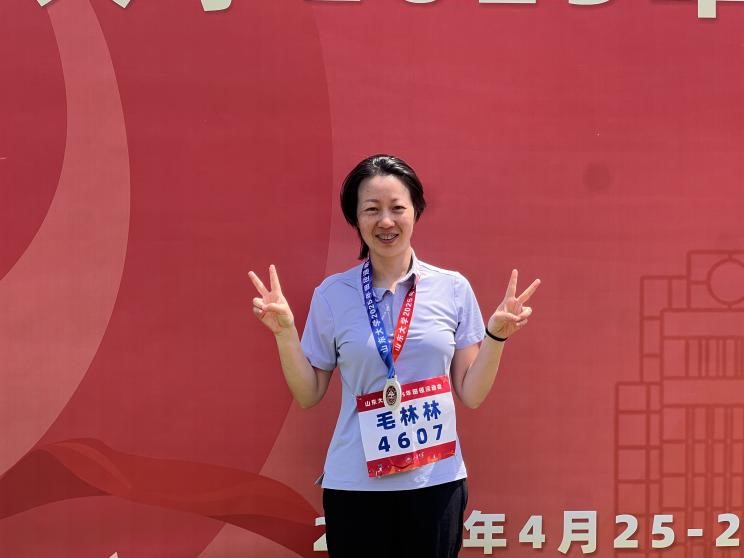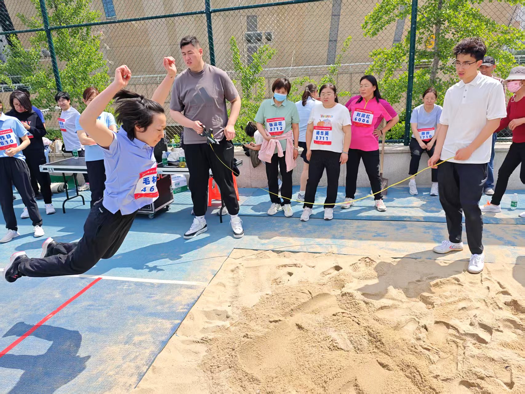 师者表率,言传身教践行体育理念。在本次运动会上,哲社教师队伍走出课堂,以赛场为讲台,展现育人者风采。教工队伍在跳远、铅球、跑步等多个项目中与其他公司展开了激烈的角逐,其中毛林林老师凭借出众实力斩获女乙教工组立定跳远亚军。在集体项目中,教师拔河队凝心聚力,4×100 米混合接力队默契配合,以实际行动传递“健康第一”的生活理念。