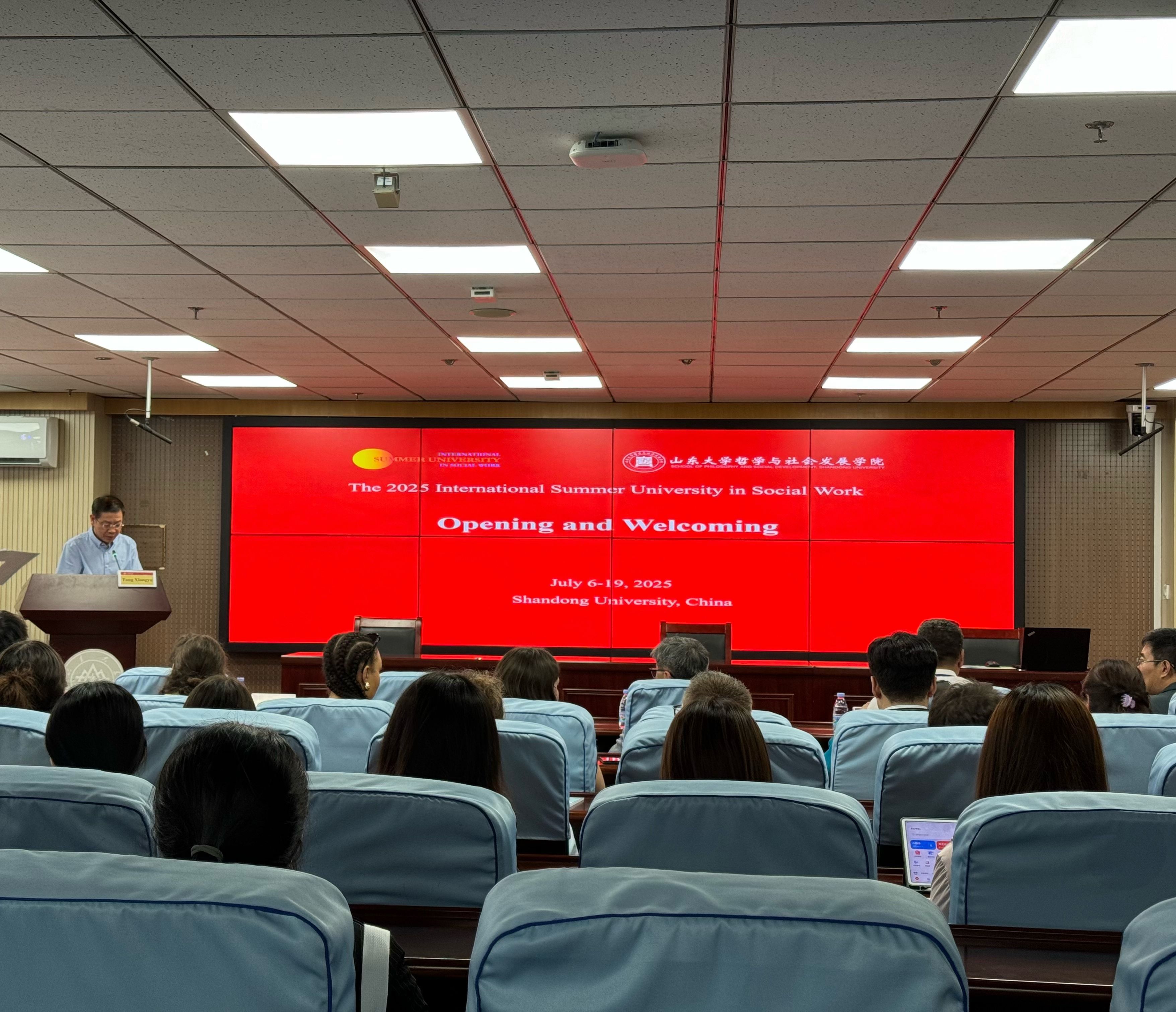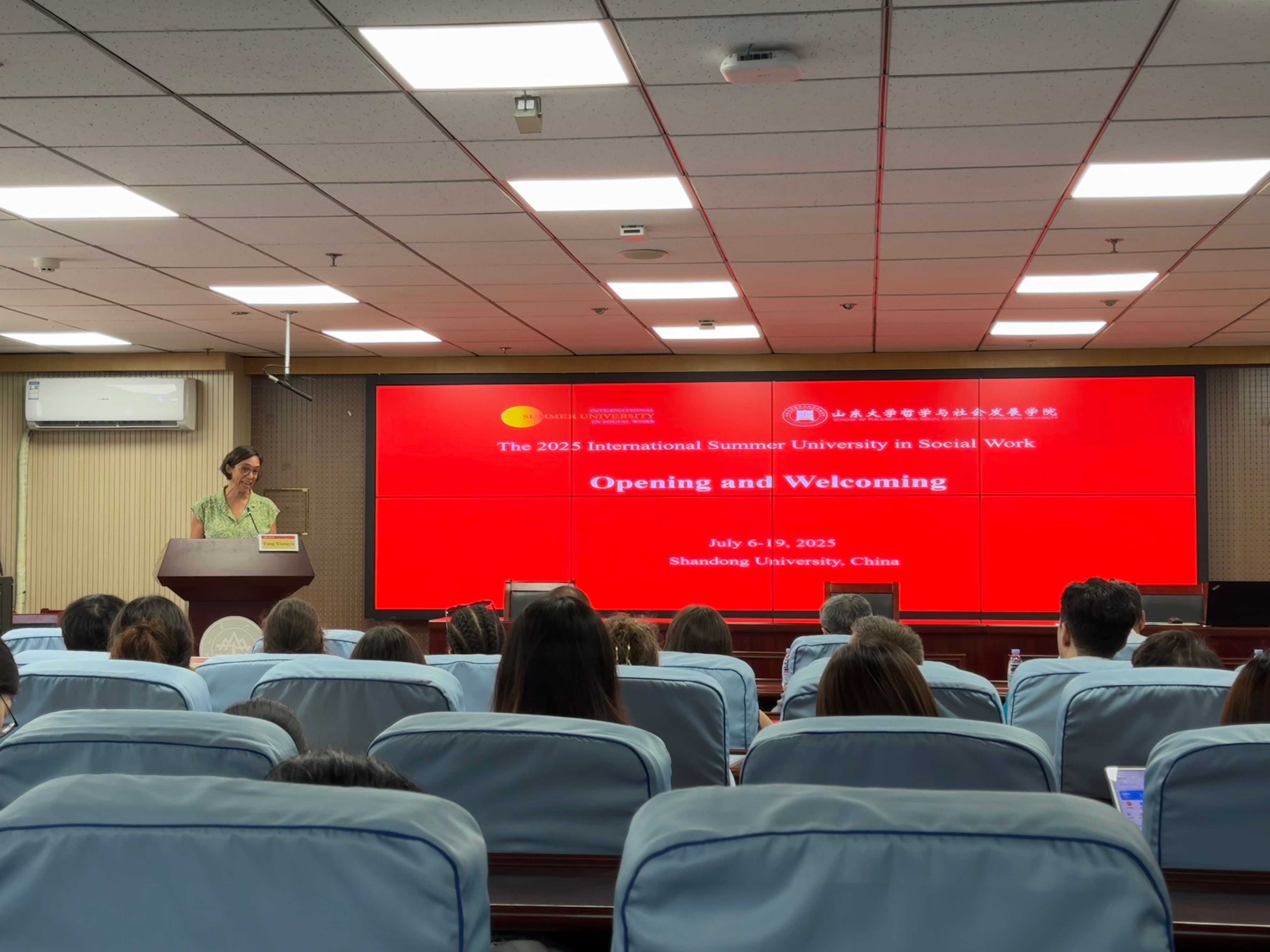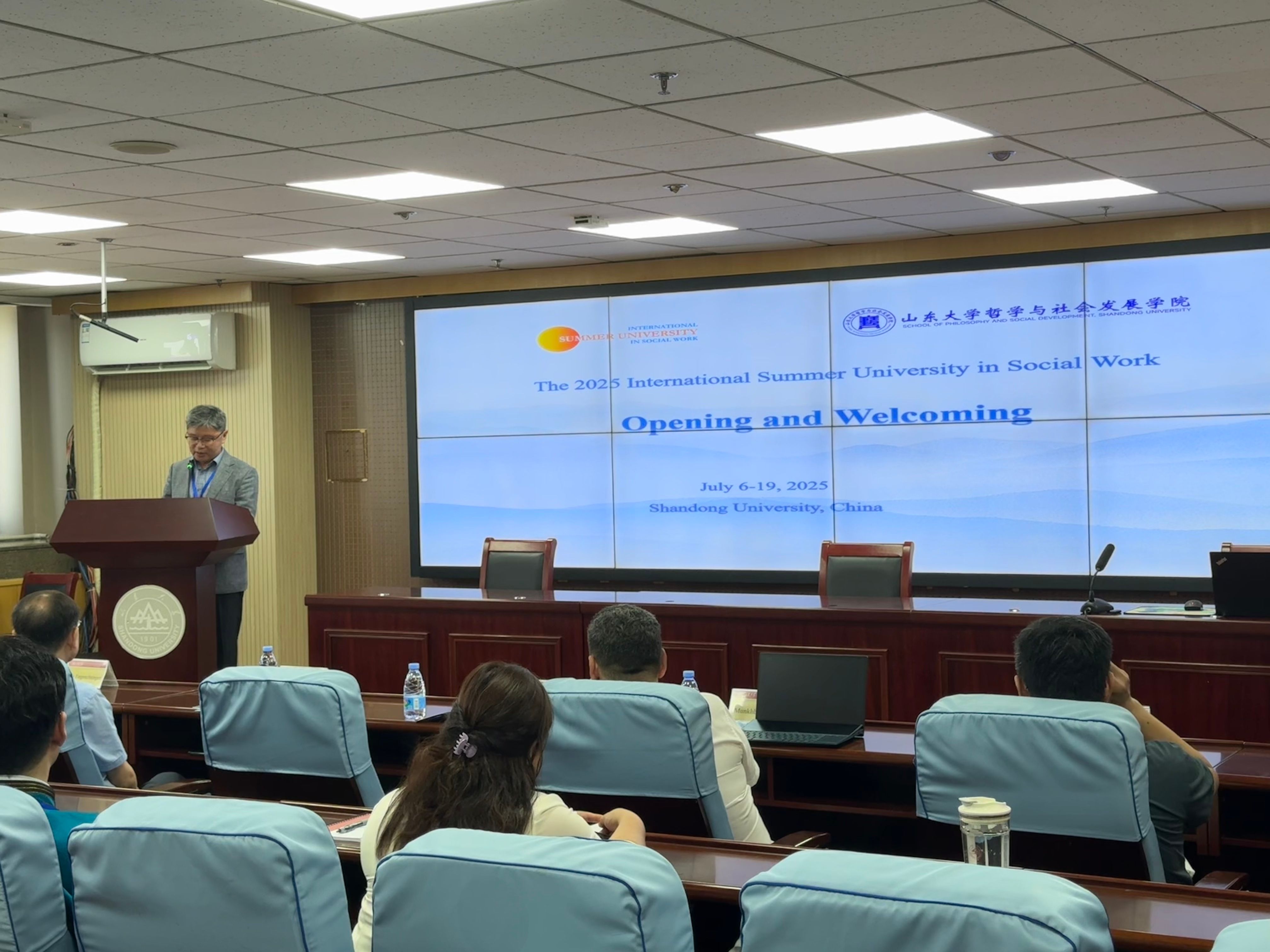 7月7日上午,申博sunbet社会工作国际暑期公司开幕式在知新楼A1521报告厅顺利举行。本次社会工作国际暑期公司的主题为“跨学科与社会工作”,来自香港中文大学(CUHK)、瑞士西部应用科技大学(HES-SO)、以色列希伯来大学(HUJI)、蒙古国立大学(NUM)、印度Rajagiri社会科学公司(RCSS)、加拿大不列颠哥伦比亚大学(UBC)、美国加利福尼亚大学洛杉矶分校(UCLA)、澳大利亚西悉尼大学(WSU)和申博sunbet(SDU)等国内外知名学府的师生40余人参加本次国际暑期公司。