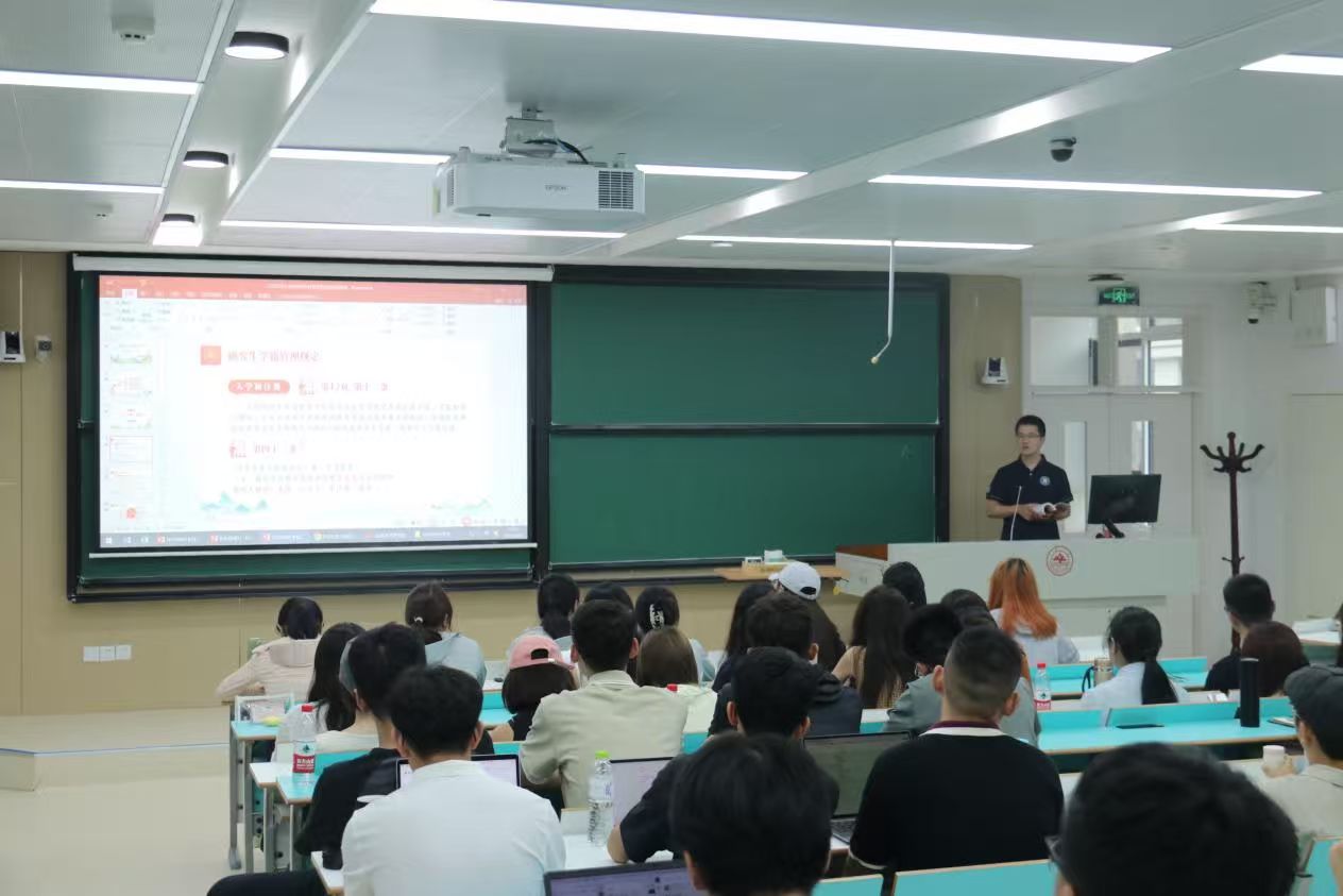 为帮助2025级研究生新生尽快适应研究生阶段的学习生活,树立良好的行为规范和纪律意识,9月4日下午,申博sunbet以“规矩—知多少”为主题,在中心校区理综楼209d室开展了研究生新生入学教育第四课:研究生新生制度规范学习教育。公司研究生辅导员吕汶鑫主讲。