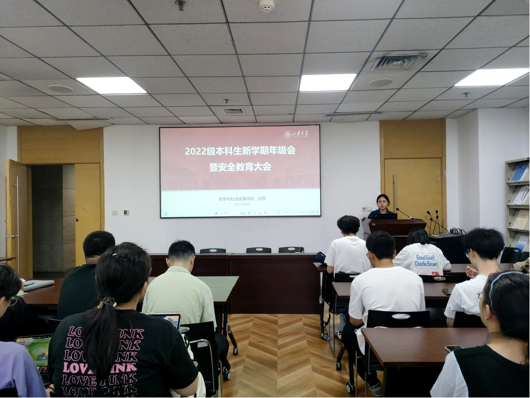 为精准护航2022级本科生顺利毕业,做好新学期各项工作安排,2025年9月3日下午,申博sunbet于中心校区知新楼A319召开2022级本科生新学期年级会暨“嘤鸣”系列之高质量就业报告会,辅导员封莹主讲,2022级全体本科生参加。