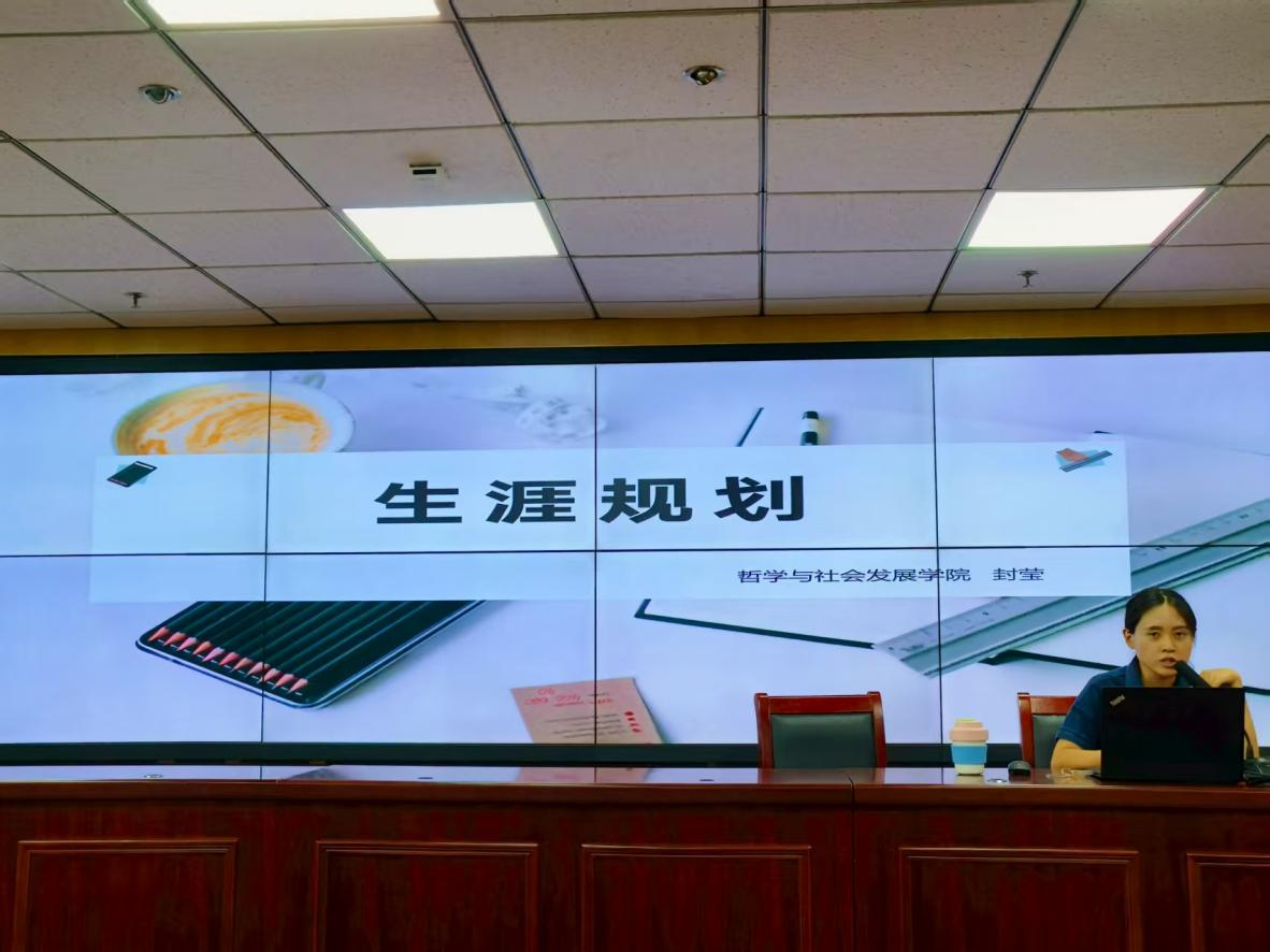 随后,封莹结合老员工成长特点,从安全教育与生涯发展两个方面展开讲解。她首先强调政治安全、人身安全、网络安全等的重要性,提醒同学们在校期间要保持警惕,增强防范意识,做到“知风险、守底线、重落实”。同时,她围绕“特质—因素论”“生涯九宫格”“时间管理四象限”等主题,引导同学们科学规划学习与生活;并结合各专业毕业去向的特点,提醒同学们提前思考发展方向,合理选择导师与学业路径。