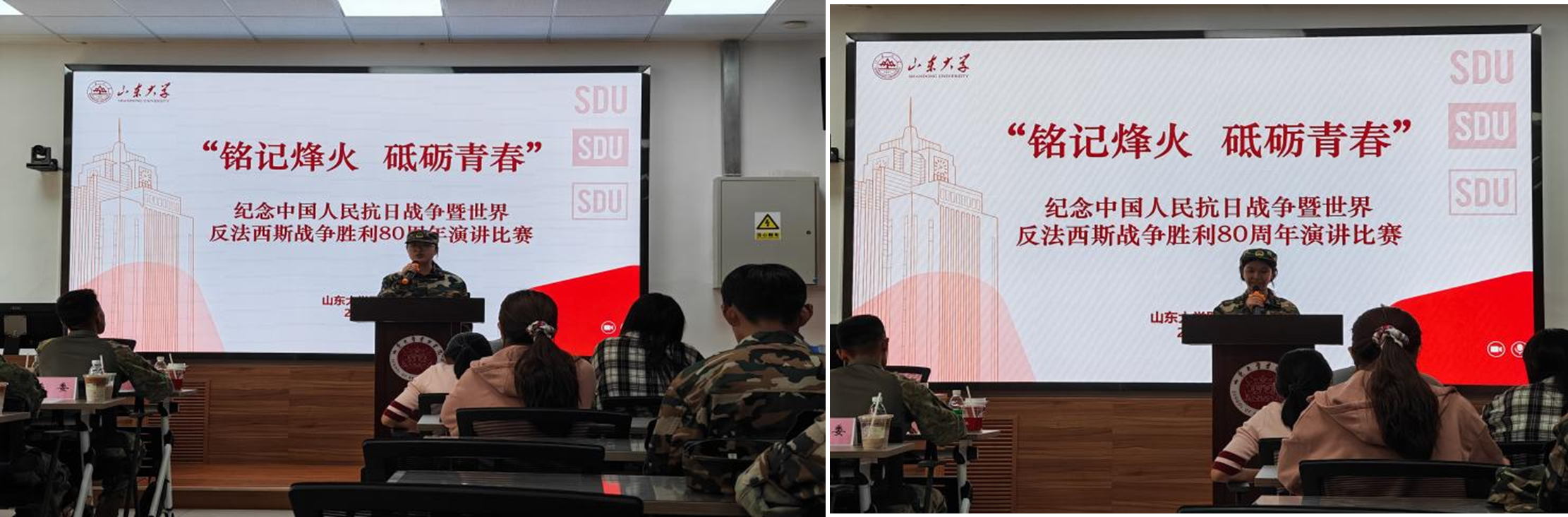 在紧张严肃的军事训练之余,公司精心策划了一系列入学教育活动,助力新生熟悉校园,体悟老员工活,让员工在迷彩戎装中,也能感受文化与思想的滋养。集体观看九三阅兵仪式,感悟大国崛起,铭记抗战历史;公司邀请校医院开展安全知识讲座,以温和话语叮嘱卫生防护要点;组织参观校史馆,透过历史资料与厚重展陈,触摸学术传统脉络,领略山大精神传承。学长学姐组织破冰活动,在游戏中拉近彼此距离;共同唱响山大校歌,激荡崇实求新的学子情怀;在“铭记烽火 砥砺青春”的激昂朗诵中,80年抗战情怀在山大土地上延续。这些活动,不仅拓展了军训的维度,更让同学们在体魄锻炼之外,实现精神的充实与视野的开阔。
