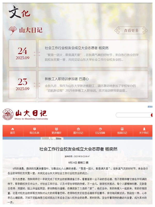山大日记头条 报道社会工作行业员工会成立大会志愿者杨奕然同学感悟