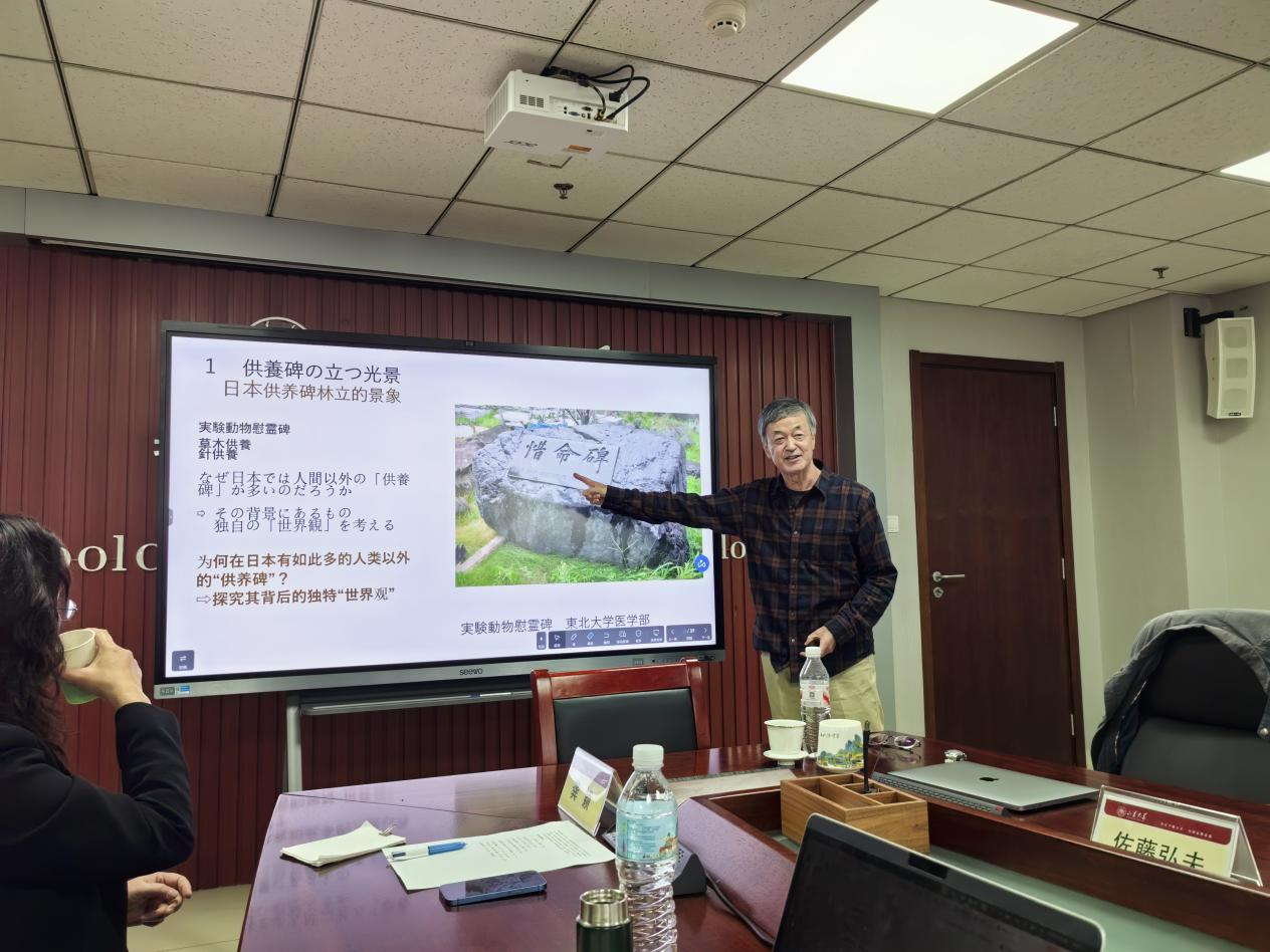 在提问互动环节,佐藤教授就东亚思想如何克服人类中心主义等问题与在场师生进行了深入交流。佐藤弘夫教授的讲座以其独特的视角和深厚的人文关怀,不仅系统梳理了东亚哲学中超越人类中心主义的宝贵思想资源,更将古典智慧与后疫情时代的全球性挑战紧密结合。此次讲座极大拓宽了公司师生的学术视野,启发了大家从关系性的东方哲学的角度,重新反思人与自然、人与万物的根本联系,为公司的学术研究注入了新的活力与深刻启示。