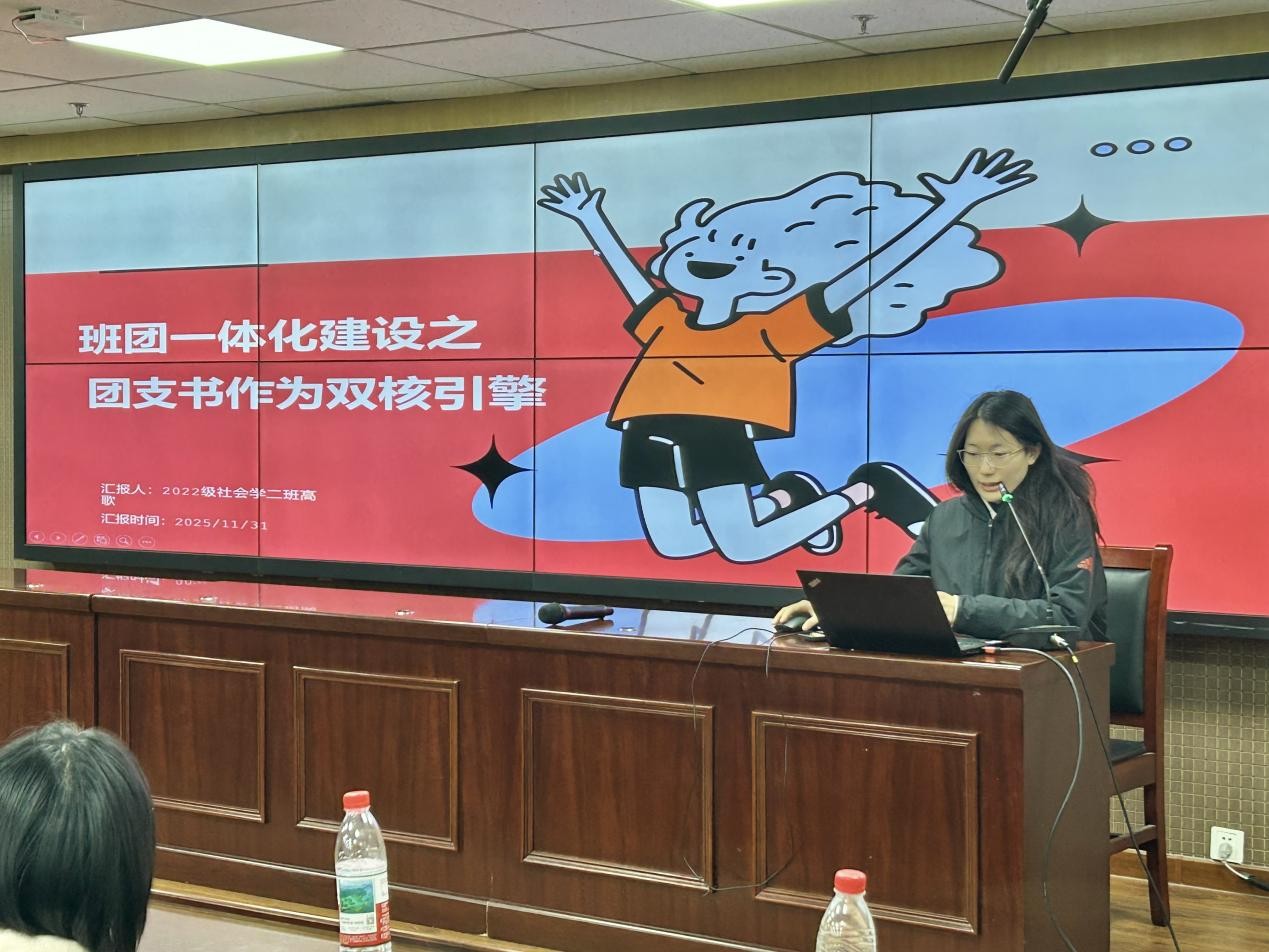 交流会上,22级优秀员工干部代表围绕班委工作重点展开针对性分享:本科生第一党支部书记、社会学二班团支书高歌提出团支书应承担“行政+思想”双驱动角色,强调工作留痕与关键环节落实;本科生第二党支部书记、哲学强基班团支书时千惠聚焦班团一体化建设,分享规范团课组织、落实“三会两制一课”等实操经验;公司员工会负责人、社会学二班班长周子龙以“正式+非正式实践”为框架,拆解学业工作兼顾与实务技能提升路径;哲学班班长姜宇轩从初心立场、职责定位、能力意识三方面,明确班委“信息桥梁、活动组织、班级代表”三重角色,强调“初心+责任”的核心要义。