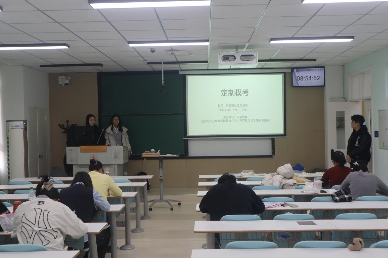 为助力公司员工高效备战公考,提升应试素质,11月23日,哲社公司研究生会与马克思主义公司研究生会,联合粉笔教育特别打造 “高校定制,模考未来” 公考模拟考试活动。