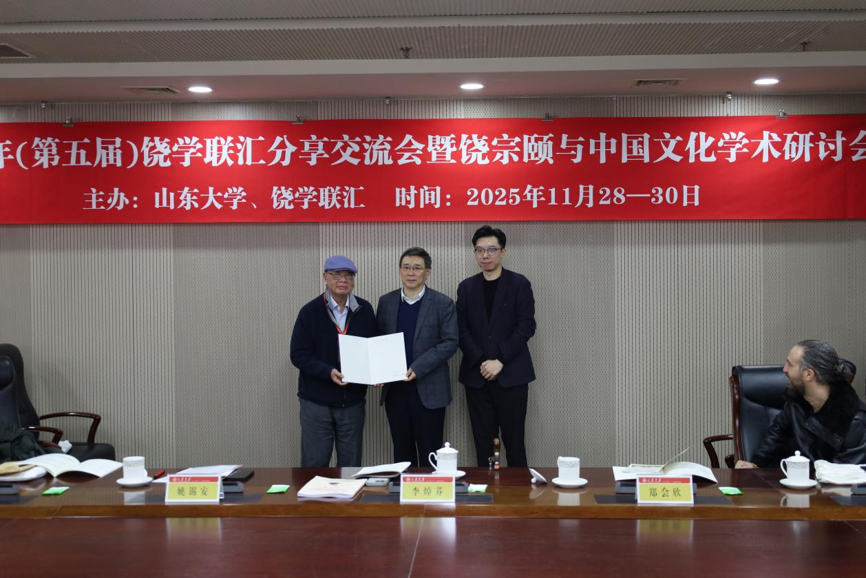 李焯芬在致辞中深情追溯了饶宗颐先生与申博sunbet(包括齐鲁大学)近八十年的深厚学术渊源。他指出,饶先生青年时期深受申博sunbet顾颉刚、林仰山、童书业等前辈学者的重视与指导,其研究成果发表在山大刊物上,奠定了他在学术界非同一般的起点。饶宗颐先生独具特色的学术轨迹和学术贡献,以及在甲骨文、方志学等多个领域的开创性突破,都与早年同齐鲁学者群体的学术互动密不可分。