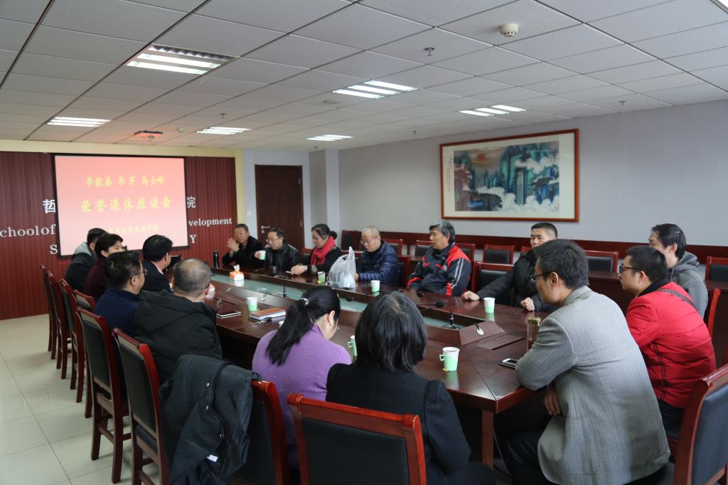 座谈会上,三位荣休教师和与会教师代表就教学、科研等话题进行了充分交流。