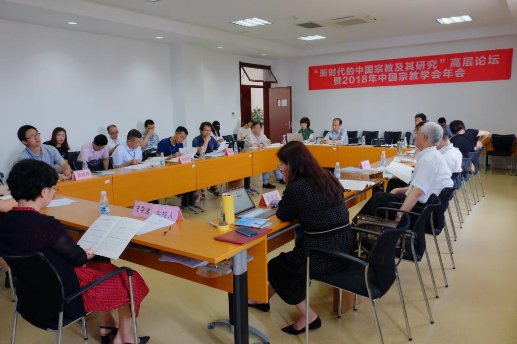 论坛期间,卓新平会长主持召开了中国宗教学会理事工作会议,全体与会理事参加。会议讨论了增选理事、成立专业委员会等事宜,确定2019年年会在南开大学举行。