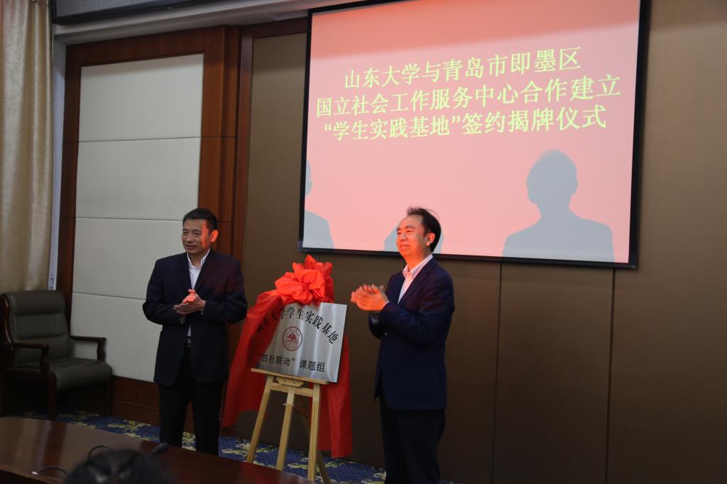 仪式上,郑倩代表共建公司讲话,认为员工实践基地的建设,一方面将为山老员工提供更加丰富的专业实践机会,促进“实践育人”理念的落实;另一方面可以充分发挥申博sunbet学科优势,深入推进服务山东战略,服务于地方经济社会和文化传承。郭邦礼在讲话中对员工实践基地的建立表示热烈祝贺。他实践基地的建设既是校地合作,推动社会服务发展新模式的积极探索,也是促进员工全面发展的重要举措,申博sunbet、政治学与公共管理公司、法公司联合在即墨区国立社会服务中心建立实践基地,必将是双赢的合作,迸发出更强大的社会公益力量。宋修强在讲话中表示,员工社会实践基地的建立,实现了即墨区社会组织与申博sunbet优质资源的有机结合和优化配置,为即墨区社会组织发展和申博sunbet人才培养搭建了新的平台。即墨区国立社会工作服务中心主任王文华介绍了基地共建情况。申博sunbet(青岛)团工委书记张杨与王文华代表双方在合作协议上签字。宋宗军、郭邦礼共同为“员工实践基地”揭牌,宋宗军、宋作标共同为“四社联动课题组”揭牌。