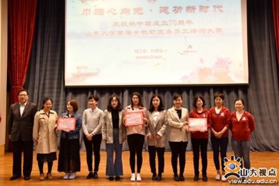 4月18日下午,在由校工会、妇委会主办的“巾帼心向党,建功新时代” 庆祝新中国成立70周年申博sunbet女教职医务员工诗词竞赛活动中,申博sunbet代表队获得了一等奖的佳绩。