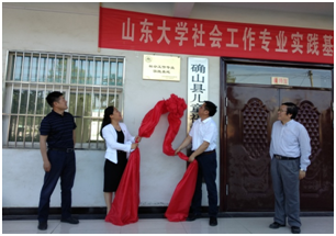 实地帮扶期间,高鉴国教授与5位社会工作专业硕士研究生结合当地留守儿童服务的重点工作开展专业实习。23日上午,在确山县福利中心举办“申博sunbet社会工作专业实践基地”挂牌仪式。确山县人民政府副县长王月红、申博sunbet副经理陈坚教授共同为“申博sunbet社会工作专业实践基地”揭牌。县民政局局长胡中全、社会工作系主任高鉴国教授,县福利中心工作人员和社会工作专业硕士研究生一起参加了挂牌仪式。