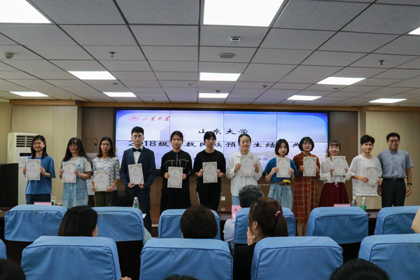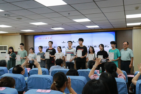 公司为预科生准备了结业纪念品,镌刻着学号的定制戒指、印有山大哲社印记的U盘和帆布袋,都承载着公司对预科生们的不舍与祝福。典礼最后,仝兴华、周作福、刘传勇、刘森林、郑倩、程胜利为少数民族预科生颁发结业证书。