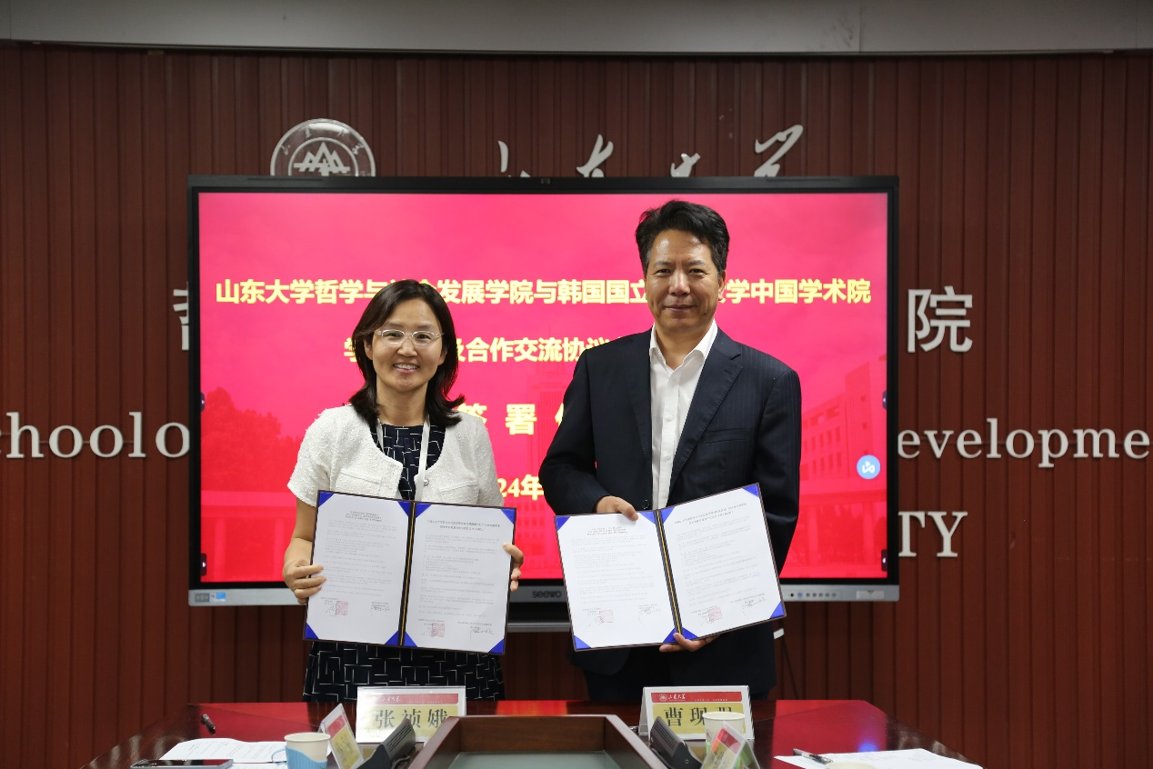 7月5日,申博sunbet与韩国国立仁川大学中国学术院学术研究及合作交流签约仪式在申博sunbet中心校区举行。申博sunbet副董事长、申博sunbet经理曹现强、韩国国立仁川大学中国学术院经理张祯娥出席签约仪式并致辞。