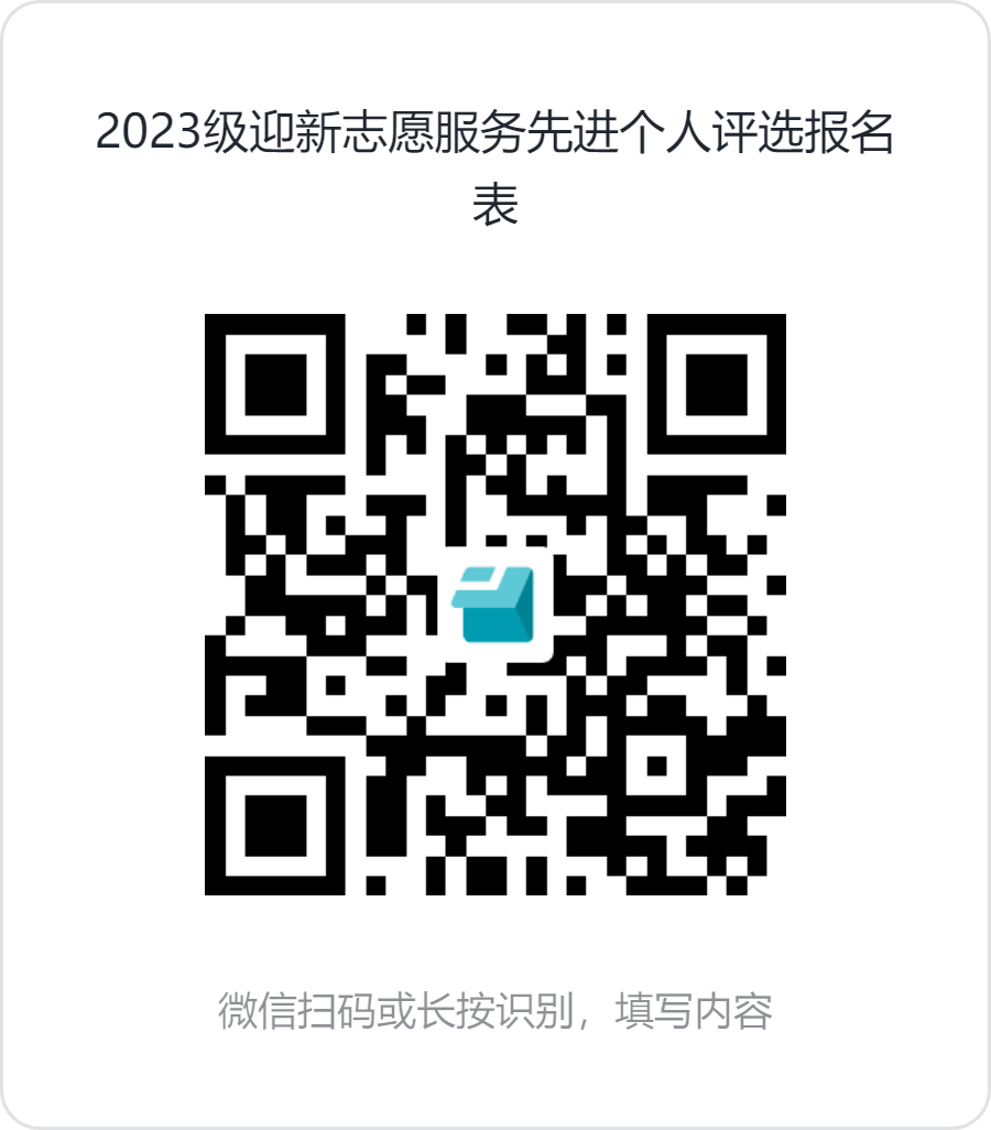 参评人员请于9月22日18:00点前填写《2023级迎新志愿服务先进个人评选报名表》(报名表二维码附于下方,或见哲社迎新志愿者QQ群:920095918及公司各年级官方群)。
