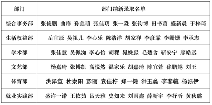 注:自公示贴出之日起两个月为本届干事试用期。如有异议,请联系吴同学(电话:15965526795)。