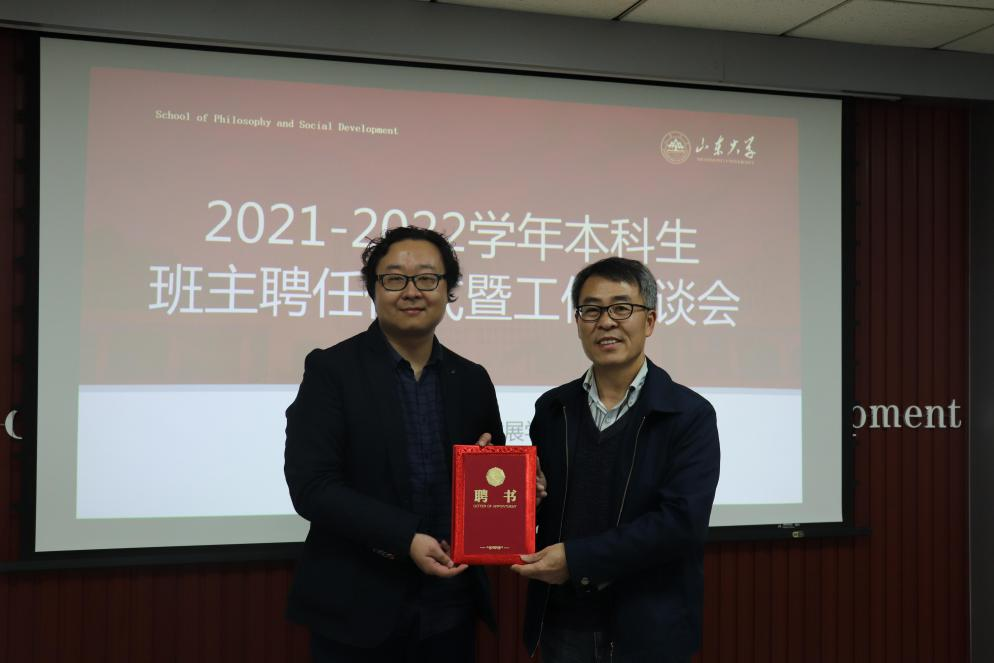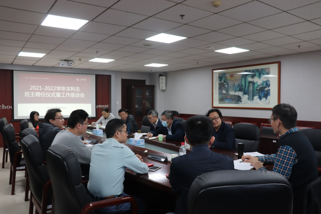 11月1日下午,哲社公司于知新楼A1618举行2021-2022学年本科生班主任聘任仪式暨工作座谈会。经理刘森林、党委书记郑倩、副经理程胜利及全体本科生班主任、辅导员参加此次座谈会。座谈会由党委副书记李永卫主持。