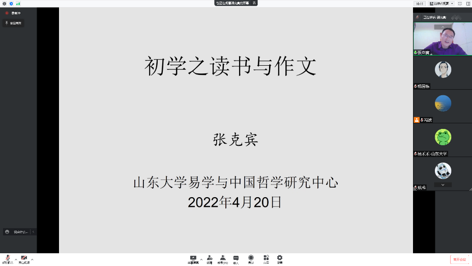 张克宾老师从中国哲学论文写作的前期准备工作、中国哲学论文写作需要的基本能力等方面进行了讲解。