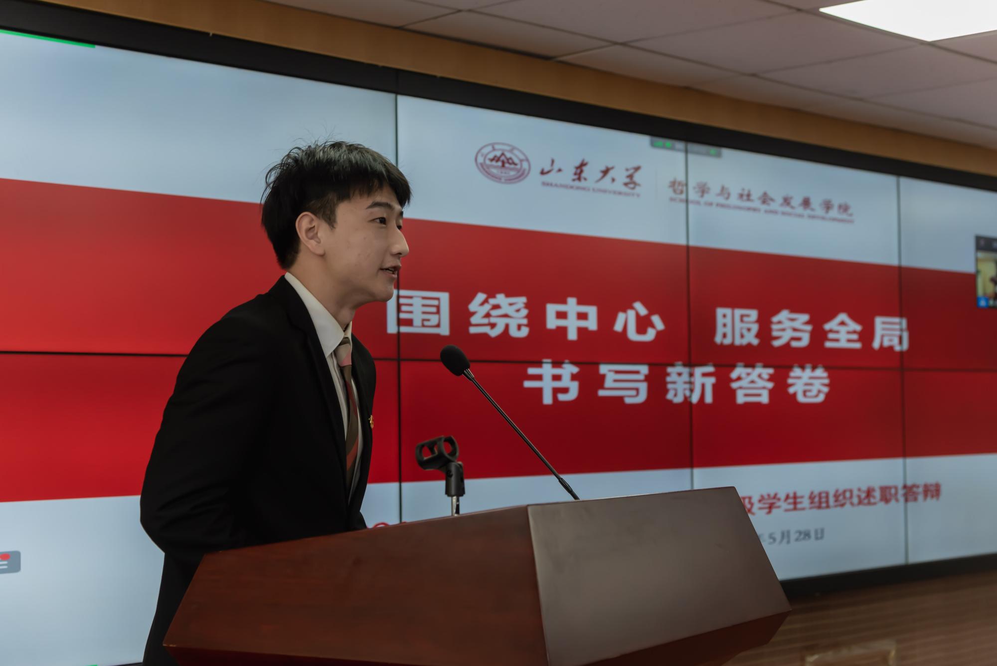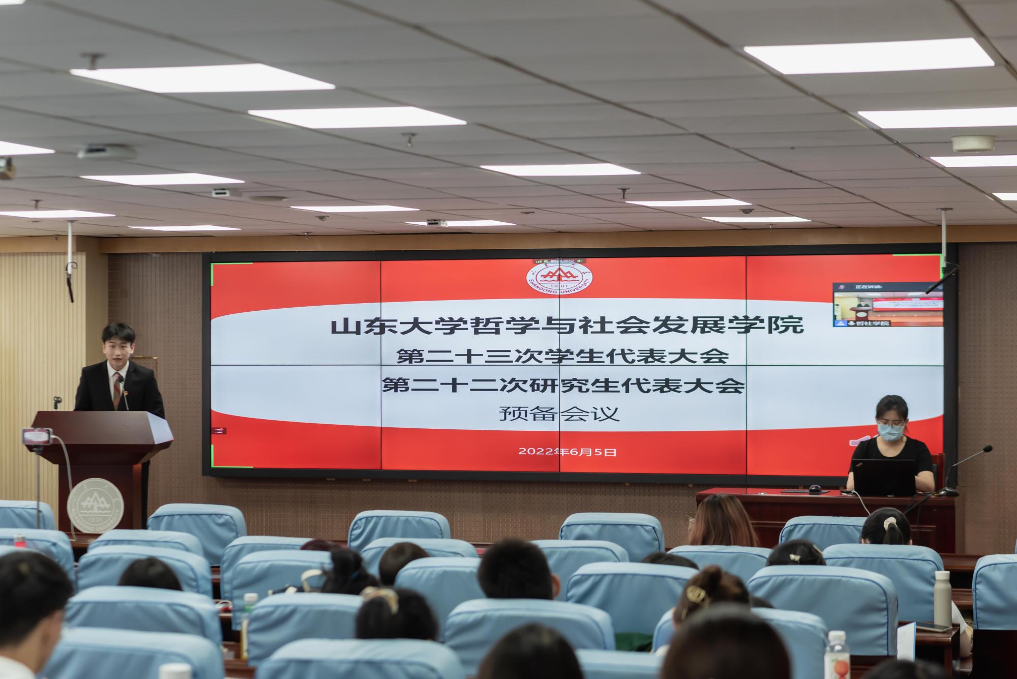 第22届员工会主席常张杰作2021-2022学年员工会工作报告,从基础建设、活动创新等多方面展示员工会以服务师生为宗旨的多元发展,表示哲社公司员工会将继续把握时代主题,带领全院青年员工砥砺前行奋发向上。第22届员工会分管主席李一鸣作2021-2022学年员工权益工作报告,具体介绍为保障员工权益所举办的各类权益活动和公众号栏目改革等一系列举措,并将继续从多个维度上为同学们的生活权益保驾护航。随后,研究生会主席纪君婷作2021-2022学年研究生会工作报告,研会着重打造学风建设,将继续健全工作体制机制,更好地服务广大同学。