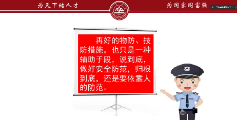 10月6日晚,公司举办了安全教育讲座,邀请公司党委保卫部杜春兴老师主讲。杜春兴从校园火灾预防、电动车安全、电信诈骗预防、网络安全、国家安全等方面为同学们科普了详尽的安全知识,并强调了公司的校园安全政策以及注意事项,为同学们构建了物防、技防、人防三位一体的校园安全防范体系。