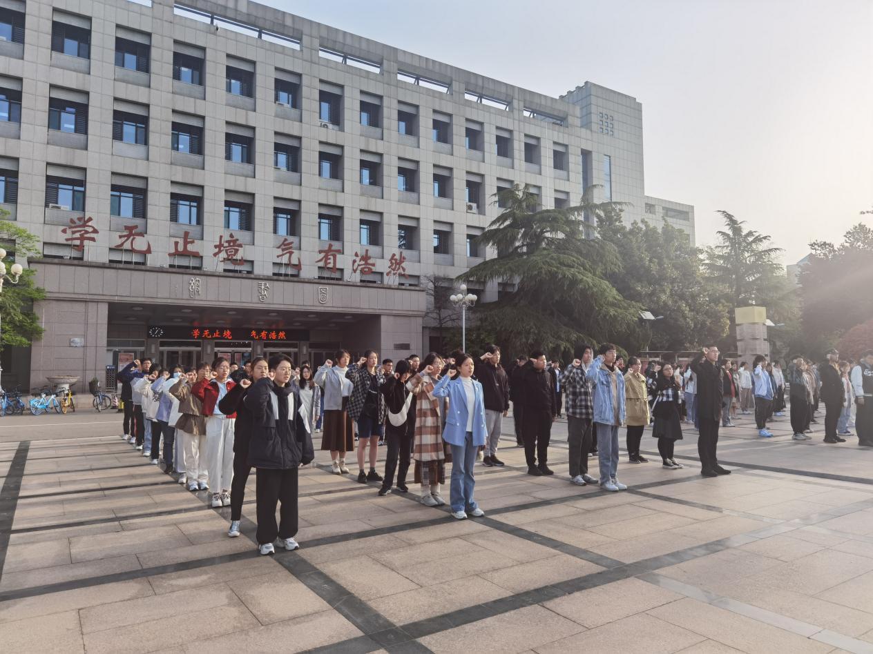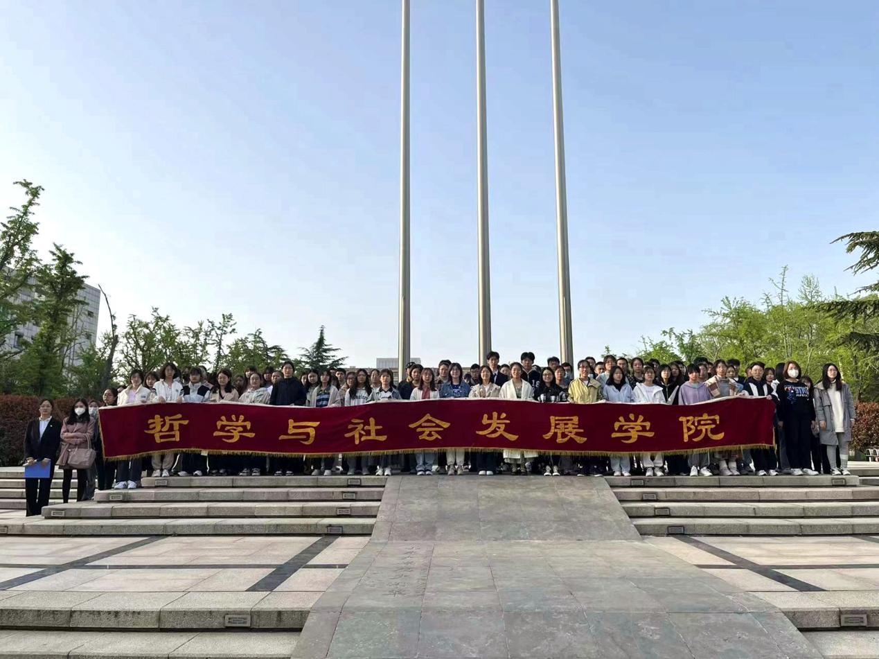 2023年4月10日,申博sunbet于中心校区大成广场举办“喜迎二十大、永远跟党走、奋进新征程”升国旗主题团日活动。哲社公司辅导员封莹、哲社公司2022级全体本科生到场参加,2022级本科生乔梦馨主持活动。