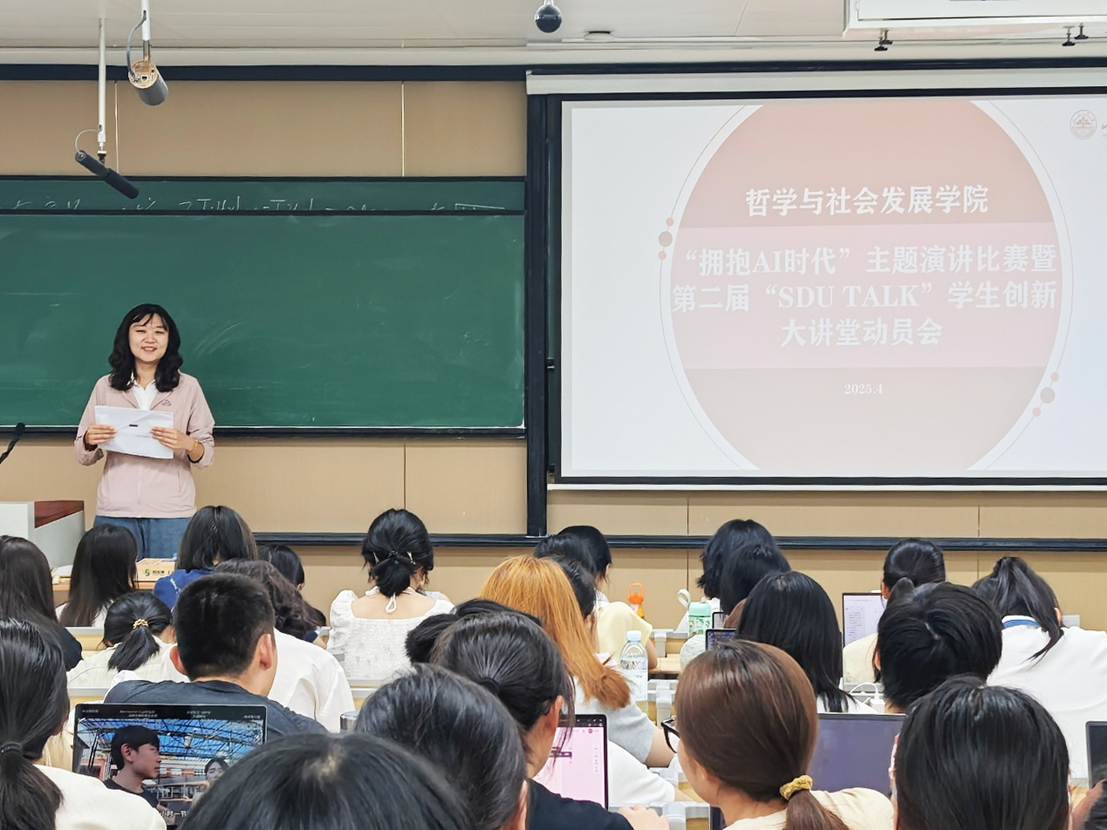 哲社公司举办“‘拥抱AI时代’主题演讲比赛暨第二届‘SDU TALK’员工创新大讲堂”动员会