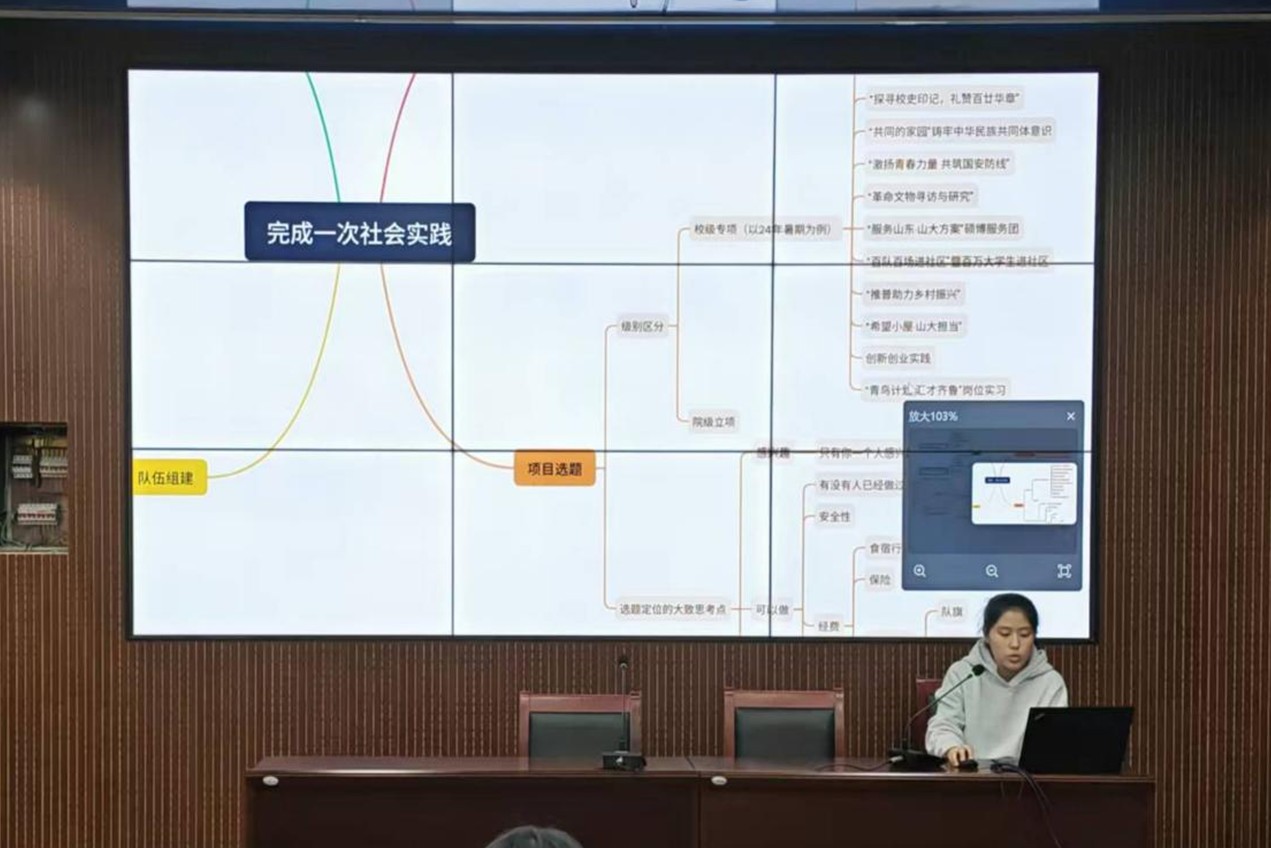 随后,山大哲社哲心绛韵团队尹金堂与哲学赵梓媛主要围绕支教项目为同学们展开分享经验,着重强调安全问题与资金问题,并向同学们展示多样的宣传渠道,阐述了支教项目从构想到落地的各个要点,既让同学们深刻认识到支教工作面临的困难,也让大家深切体会到支教活动所蕴含的重大意义。