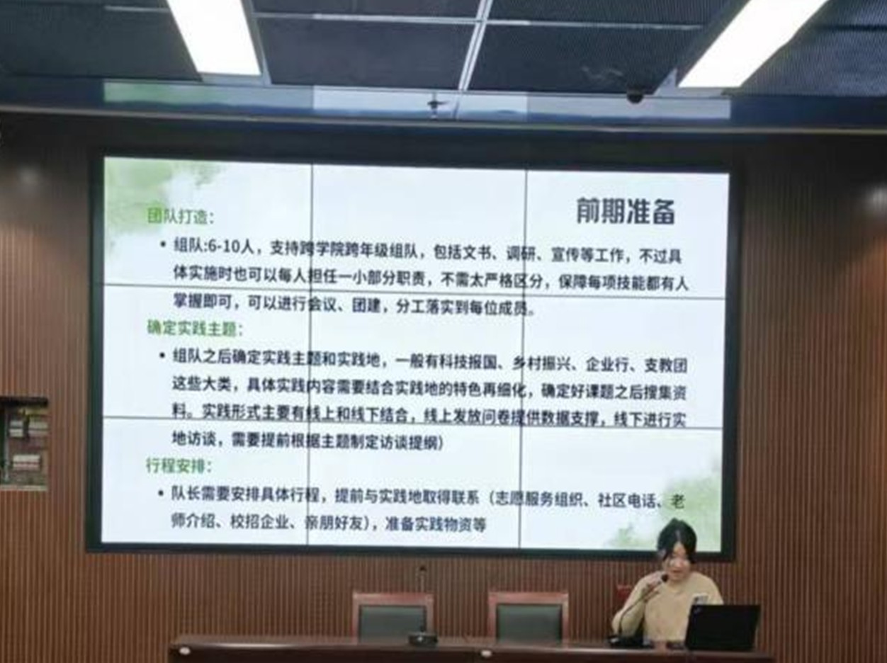 接下来,李沐遥结合自己24年的切身社会实践经历,警示同学们在项目选题上注意避免重合与安全问题。在队伍组建方面,深入分析了两种组建形式的利弊,并进一步阐述了好宣传的重要性,并且希望有意愿成为队长的同学能够勇于承担责任,通过社会实践给自己一次全方位的锻炼。