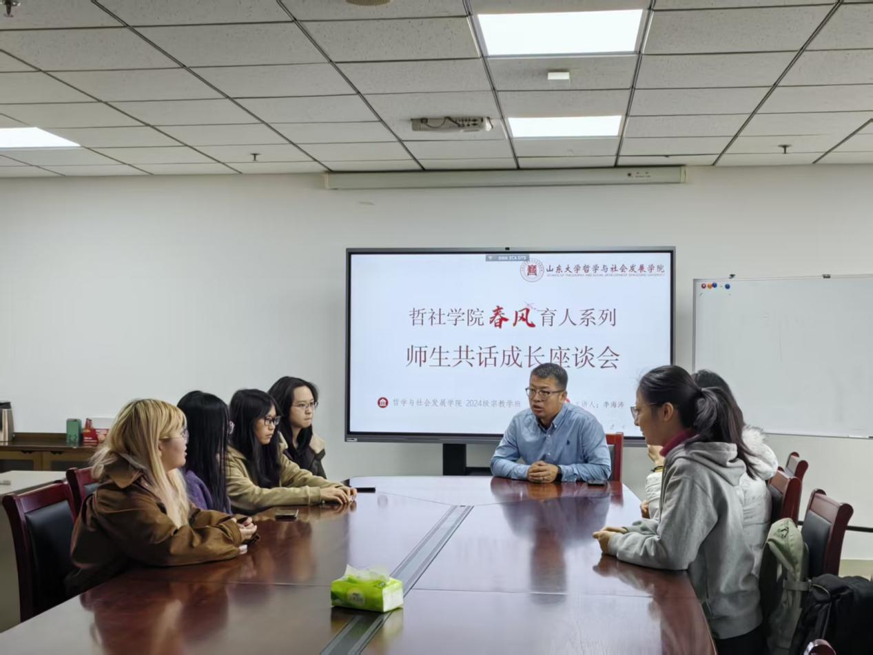 为扎实推进班级学风建设,精准回应员工成长需求,3月20日下午四点,2024级宗教学专业于知新楼A1721召开“春风育人”系列主题班会。班主任李海涛老师主持会议,全体同学参会,围绕学习生活、课程安排、学业发展、班级建设等多项内容展开深入沟通与交流。