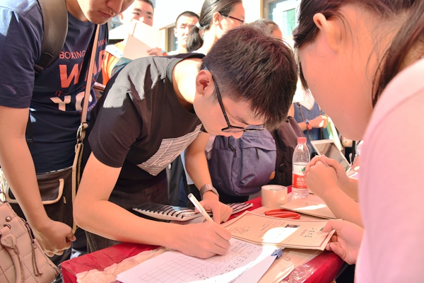9月8日迎新工作正式开展。上午出现了新生集中报到的一个 小高潮,迎新工作如火如荼地进行着。员工接待处的工作人员为新生发放开学相关材料,办理入住手续,引领新生有条不紊地完成报到的各项程序,并协助新生领取员工会准备的宣传袋和纪念品。传媒社为新生和家长在宣传墙前合影留念,之后志愿者们负责将每一名到来的新生及家长送到宿舍,安置好之后离开。醒目的红色欢迎条幅、员工会成员们热情周到的服务、志愿者们不辞辛苦的身影,让公司迎新现场充满了家的温馨。