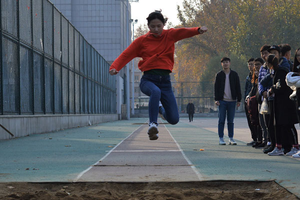 运动会设有男子女子100米、200米、400米、1500米、铅球、垒球、跳远、4*100米接力等多项竞技活动,以及拔河、竞速协作、企鹅接力、泰坦尼克号、袋鼠行动等多项趣味活动。短跑比赛中呐喊声,加油声连绵不断,声音鼓舞着运动员们奋勇向前。跳远运动员们助跑、踏跳、腾空、踏入沙坑,激起一片飞尘;拔河比赛将运动会带向高潮,加油声、呐喊声响成一片;趣味项目中队员们伴随着一二一二的口号齐心向前。运动员们在挥洒汗水中收获友谊与热情,在竞技与拼搏中体味青春活力,在对比与共融中磨练和丰富自我。同时,负责组织运动会的员工会成员也坚守在自己的岗位上,协助检录,通知运动员比赛,进场。裁判员们严肃公正的监督比赛运行。传媒社的同学奔波在赛场上捕捉精彩瞬间,记录感人时刻。大家的共同努力促进了运动会的圆满举行。最终预科一班、预科二班和2017级哲学班分别获得团体第一、二、三名的好成绩。马雁思和曹晓军分别为他们颁奖并合影留念