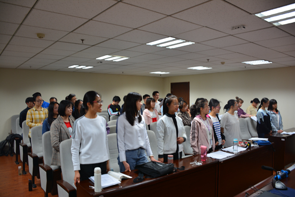 4月29日晚八点四十分,哲社公司爱若合唱团知新楼A1408进行合 唱练。由艺术公司的朱泽愚担任指挥,排练曲目为山东经典传统民歌《沂蒙山歌》。