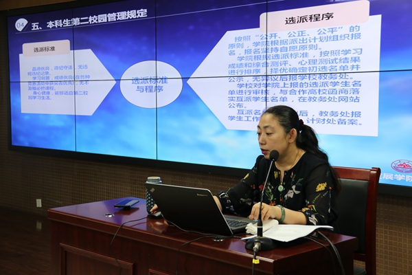 蒋霞老师的培训主要围绕本科生选课、本科生学籍管理规定、本科生通识核心课程、本科生转专业规定、本科生第二校园管理规定五个方面展开,并一一回应了2019级本科新生对于课程、学籍管理、转专业和外出交流学习等方面的问题。对于接下来新生们将要面对的选课,蒋老师也给出了具体的指导,包括流程和常见问题分析。此外,她还让新生们观看了哲学、社会学和社会工作的课程学时学分比例,让新生们对接下来需要接触的课程、修的学分有了更加具体的了解。