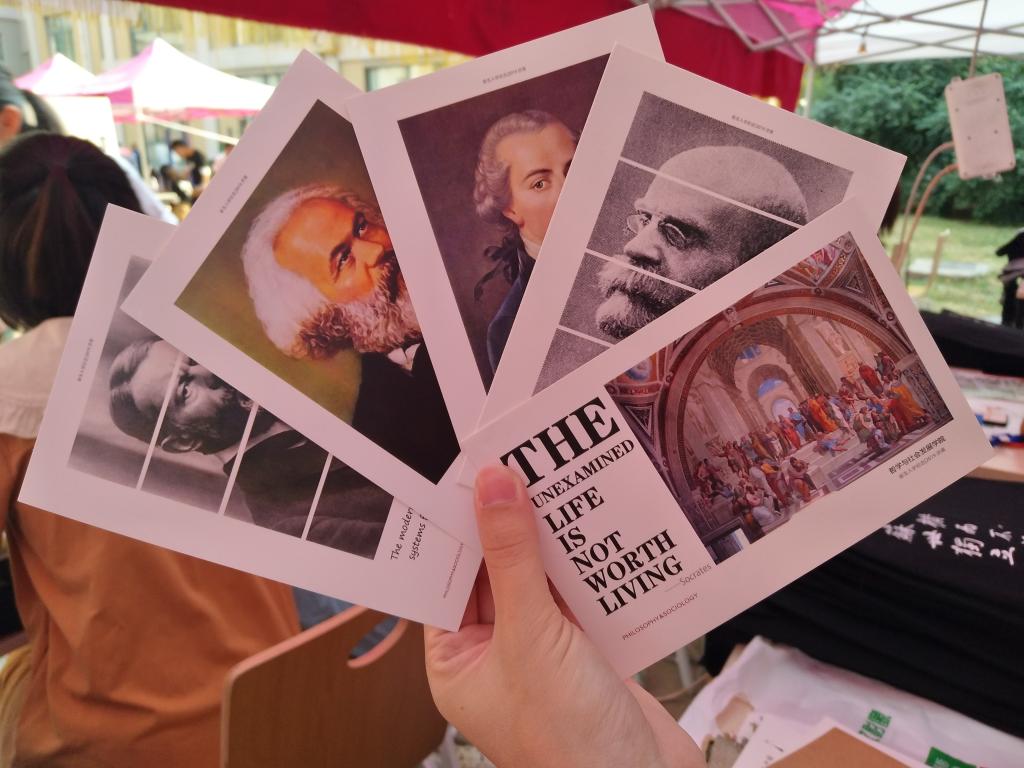 在2019年新生入学工作筹备期间,哲社公司员工会组织2017级、2018级员工以明信片的形式给即将入学的新生准备寄语,并且留下了自己的联系方式。在迎新期间,2019级入学新生可以随机挑选一张明信片,也可通过明信片中的联系方式与学长学姐建立联系,提前就进入大学中的相关疑惑进行解答,并且建立朋辈帮扶联系。