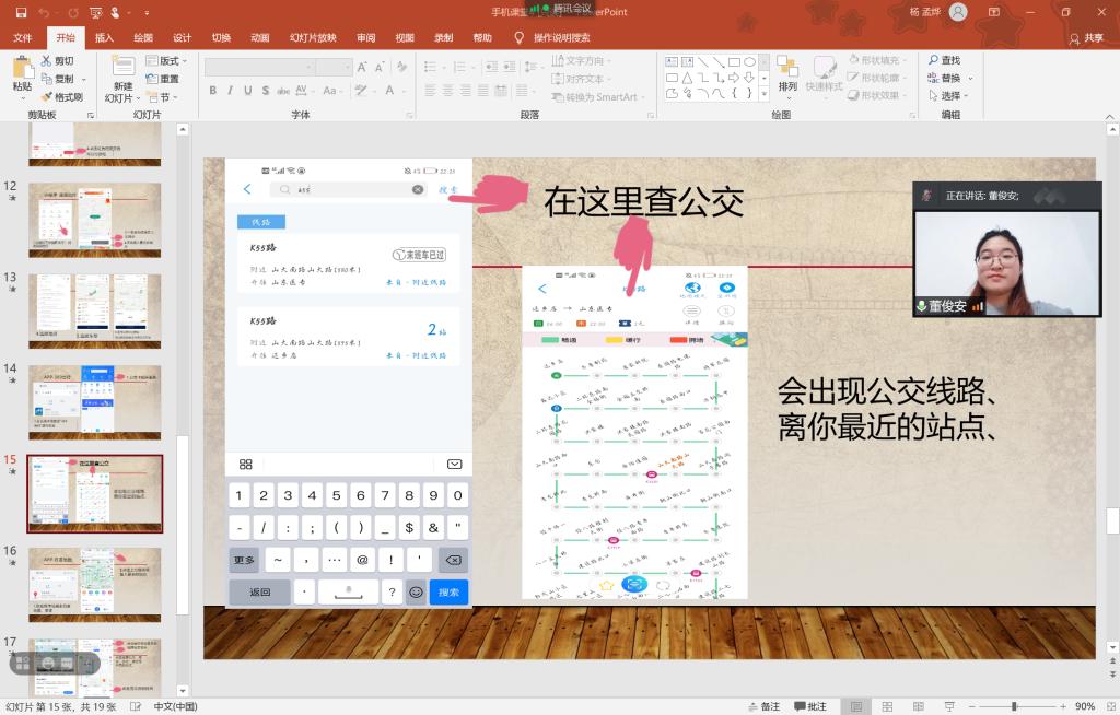 由于疫情防控要求,长者公司淮北小分队原计划的社区活动中心关闭,成员遂决定于线上自行组织开展活动。8月21日,杨孟烨、董俊安担任主讲,赵凤锦进行秩序维持,于腾讯会议开展了手机课堂。成员们向老人们普及了一些实用性强的公众号、小程序和APP,介绍它们的功能和使用方法,对老人们关注养生、线上购物、查询路线等起到帮助。虽受制于线上,但老人的身边有家人进行实时解答,成员们取得了很好的反馈。应老人期望,成员们也将手机课堂的幻灯片进行了分享,以便于老人们进行回顾与学习。