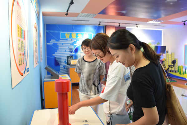 社区服务中心张菲主任带领调研团成员参观了社区服务中心的一层到四层,其中一层是办事大厅和科普馆,二层是社会组织办公室和活动室,三层是党员活动室、志愿者活动室和心理咨询室等,四层是老年大学教室、大型会议室和舞蹈教室等。孙家社区服务中心硬件建设十分完善。一楼的科普馆投入资金很大,它不仅服务于孙家社区的群众,还承担着附近幼儿园和小学的科普工作,这些小细节正体现了孙家社区公共服务中人性化、标准化的公共服务价值理念。队员们还了解到,孙家社区通过“三改、三治、三提升”来进行社区建设:三改夯基,针对生活环境落后、服务载体匮乏、治理能力低下等问题,实施城中村改造、产权制度改革、村改居三项改革,完成了城乡一体化改造;三治发力,狠抓文化建设、开展社区协商、扩大社区参与,打造阳光一家亲社区品牌;三化提升,增强社区治理能力,坚持与时俱进的思维理念,主动寻标对标提标达标,争创一流业绩。