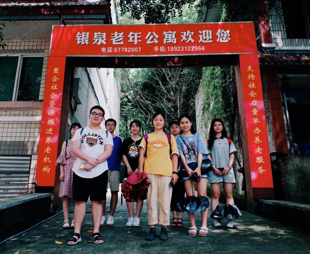 7月30日上午9时许,2019暑假重庆养老问题调研团队从重庆市唐家沱地铁站出发,乘车前往位于江北区的银泉老年公寓,看望各位老人。上午11时左右到达银泉老年公寓,团队在老年公寓门前留影纪念,并在门卫的帮助下与老年公寓的公寓方负责人进行联系交接。在对方负责人的带领下,团队成员参观并了解了老年公寓的各项设施,并对老年公寓的运营、服务对象及特色、老人们的生活有了进一步的了解。