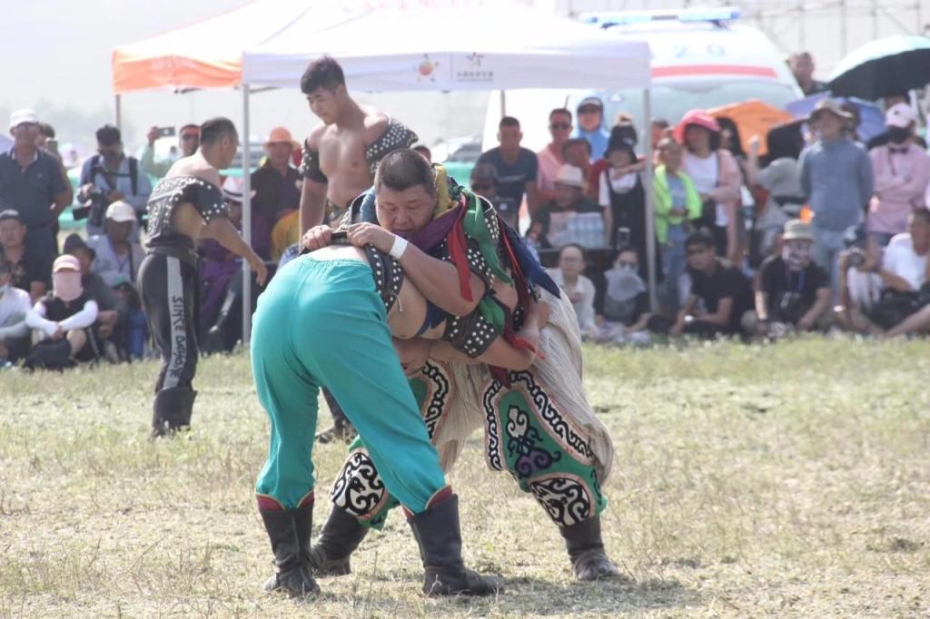入场仪式结束后,正式的比赛就开始了。搏克手之间两两对垒,有的搏克手以进攻为主,气势十足,有的搏克手以防御为主,化险为夷。在体力与耐力的比拼中,他们用矫健的身手展现了搏克竞技的魅力。比赛一直持续到下午4点,512名搏克手经过激烈角逐,最终巴林右旗格格日呼获得第一名,获得奖金5万元。