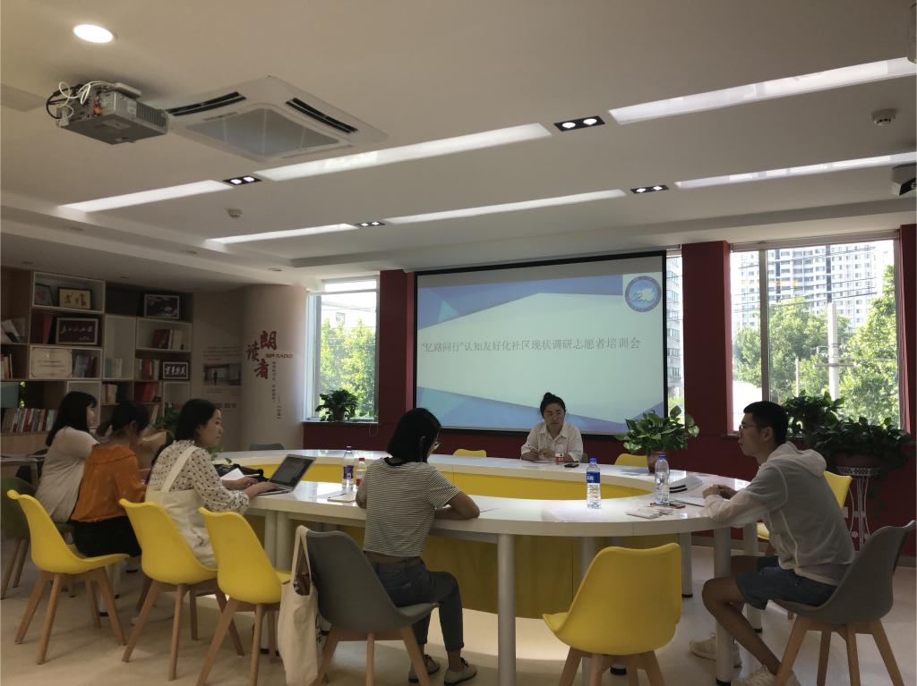 8月20日上午10时,申博sunbet哲社公司“爱忆行”济南市认知症友好化社区建设及需求情况调研团于解放路社区进行行前培训,济南市基爱社会工作服务中心负责人李明叶及解放路社区专业社工赵飞为团队成员进行调研相关培训。