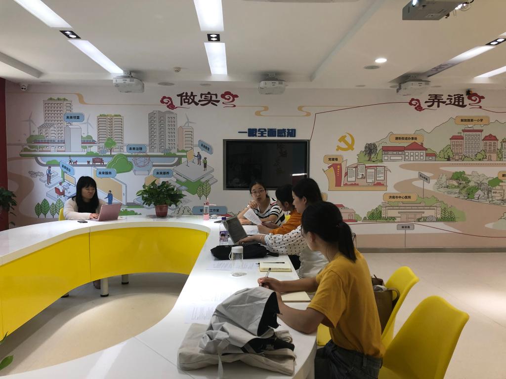 8月20日下午2时,哲社公司“爱忆行”团队暨济南市认知症友好社区建设情况及专业服务需求调研团于解放路社区开展试调研,对社区中的工作人员进行试访谈。济南市基爱社会工作服务中心负责人李明叶对团队成员访谈情况进行现场指导。