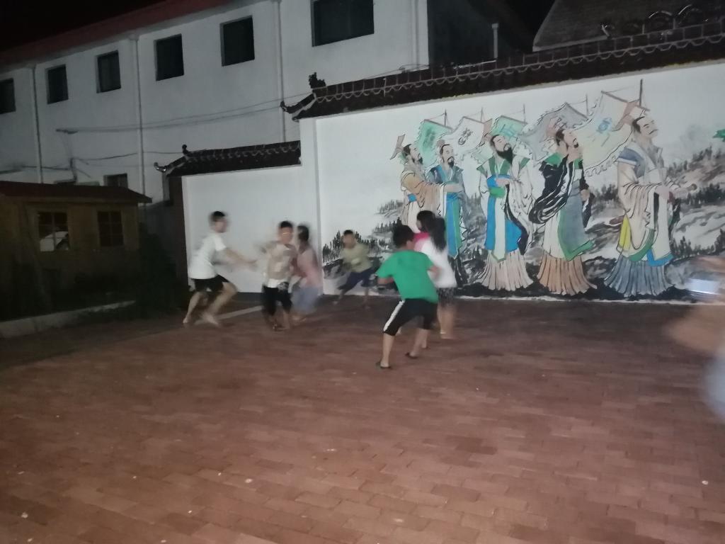 随后,我们来到了葵堌堆文化广场,在这里碰到了去年访问过的留守儿童小意(化名)。在于小意的谈话中我们得知,由于家庭经济情况太差,她打算放弃学业外出务工。队员们向她介绍了公司的各种助学政策,帮助她解决学习上的困惑和问题,并鼓励她继续完成学业。在聊天结束的时候,小意对队员们的倾听和帮助表示了感激。晚饭后,队员们再次来到葵堌堆文化广场,和孩子们一同嬉戏聊天,在欢声笑语中结束了今天的回访调研。乡村教育问题的再发现,为下一步的深入调研提供坚实的基础。