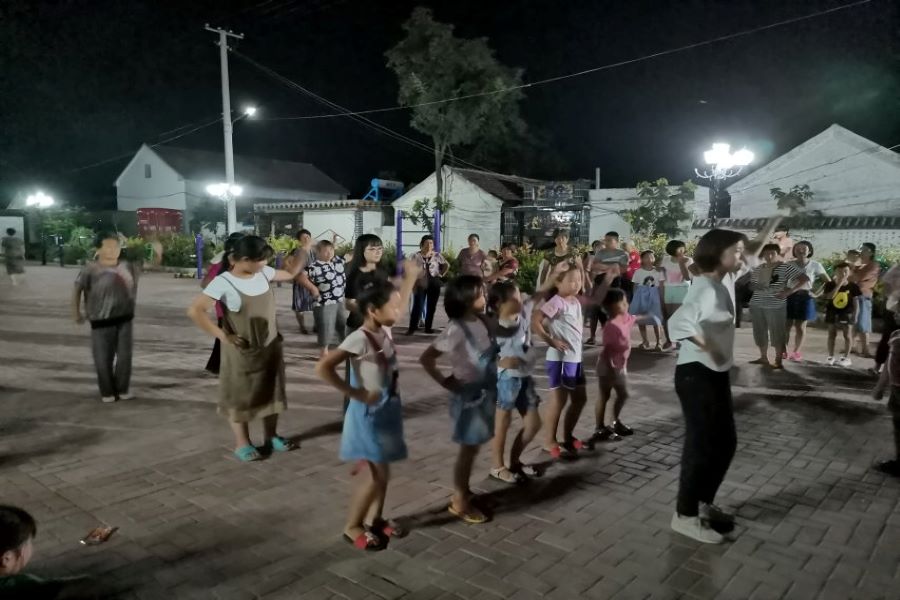 近年来,广场舞作为一种简单易学、轻松愉快的健身方式,愈发受到中老年人特别是中老年女性的青睐,并出现向年轻人群体中发散的趋势,成为现代生活中一种时尚的健康娱乐活动。哲社公司赴菏泽社会实践团队结合葵堌堆村人口的年龄性别结构和生活习惯,选择以广场舞的形式带动村民开展健身活动,一方面有助于村民强健体魄、提高身体素质、养成健康的生活习惯,另一方面为村民的日常娱乐活动提供新的形式、丰富村民的文化生活。