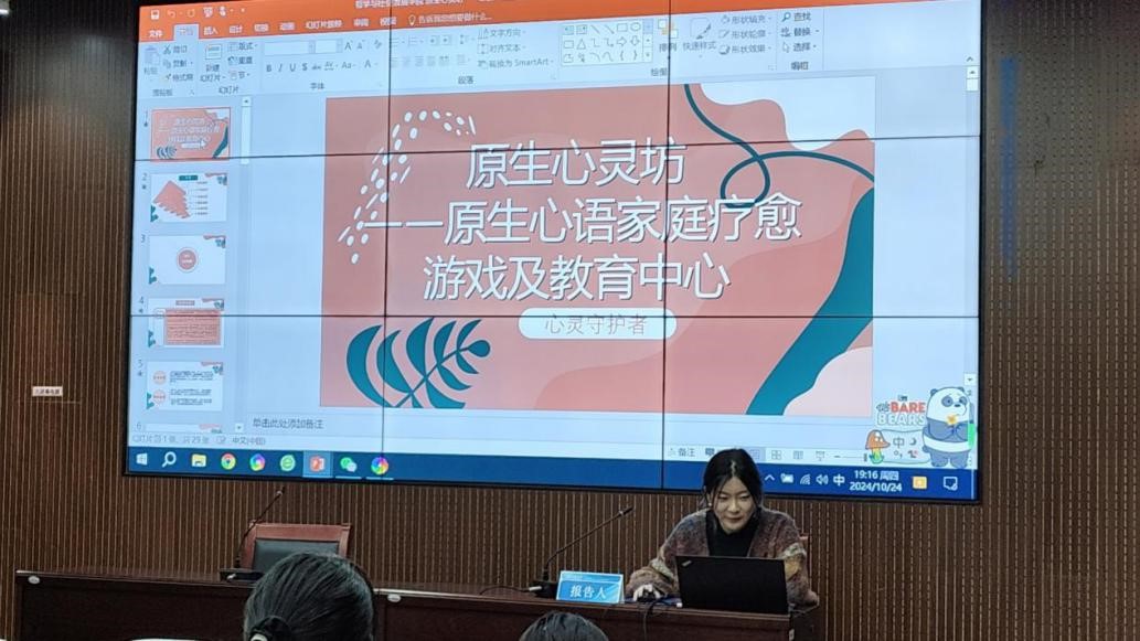 接下来,哲社公司原生心灵坊项目组负责人李勃慧从“创业背景”“产品技术”“市场分析”“团队战略”“社会价值”“发展愿景”六个方面为同学们带来项目的论证分享。其中,在产品开发环节,她强调拥有一个好想法的重要性,鼓励同学们主动用一个好想法推动一支好队伍的建设,提出要重视团队分工合作,加强多学科相互交叉借鉴,充分发挥跨学科融合优势,不断推进项目成果的完善与发展。