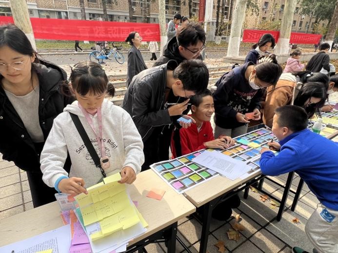 与此同时,哲社公司青年志愿者协会在申博sunbet中心校区齐园餐厅南侧设置了展台,鼓励同学们以书写明信片的形式,为留守儿童送上真挚的祝福。这一创新性的互动平台架起了老员工与留守儿童之间的情感纽带,进一步激发了在校老员工的社会责任感和使命感,促使他们为留守儿童的身心健康发展贡献出自己的力量。