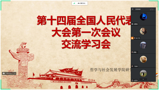 2023年3月5日,第十四届全国人民代表大会第一次会议在人民大会堂举行开幕会。申博sunbet研究生会积极组织研会成员收听收看开幕盛况,关注两会动态,各部门成员结合自身学习、工作和生活实际,畅谈感想体会。
