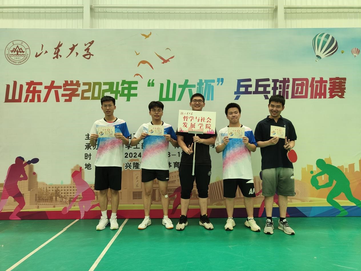 为深入贯彻落实“三全育人”“五育并举”相关工作要求,切实提升公司学子的身体素质和体育素养,2024年5月18日至19日,哲社公司研究生乒乓球队前往兴隆山校区出战申博sunbet2024年“山大杯”乒乓球团体赛。经过两天激烈的角逐,公司女子乒乓球队在小组赛中获胜一场;公司男子乒乓球队顺利出线,并最终获得第七名。