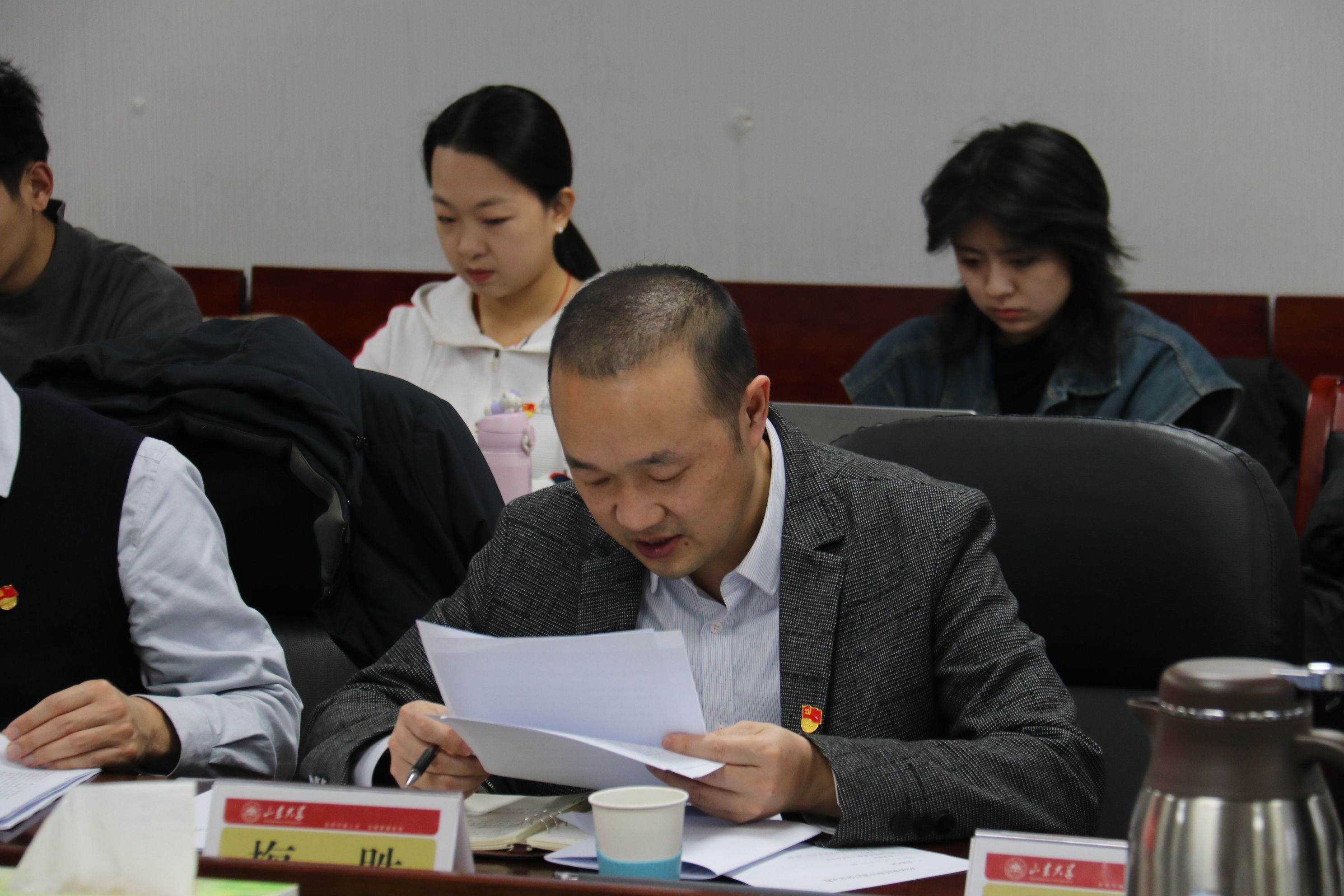 支部党员围绕习近平总书记重要讲话内容畅谈心得,交流分享。审计处党支部党员范晔和孙盈结合审计工作实际,就如何在学习工作实践中提升道德修养和业务能力,更好地服务广大师生、助力教育强国建设作专题分享。学硕第一党支部张泽宇和郭昊天立足所学专业,就哲社学子如何发挥学科优势,融合专业特色,助力强校兴国与大家进行交流。